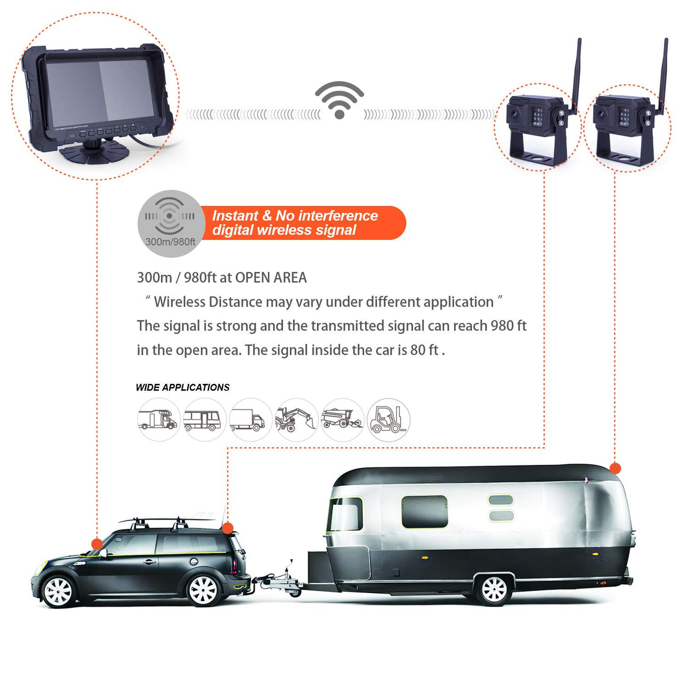 Yuwei Digital Wireless Backup Camera System,Yw-77214 Dual Hd 720P Camera Wireless Reverse System With Night Vision And Wide View
