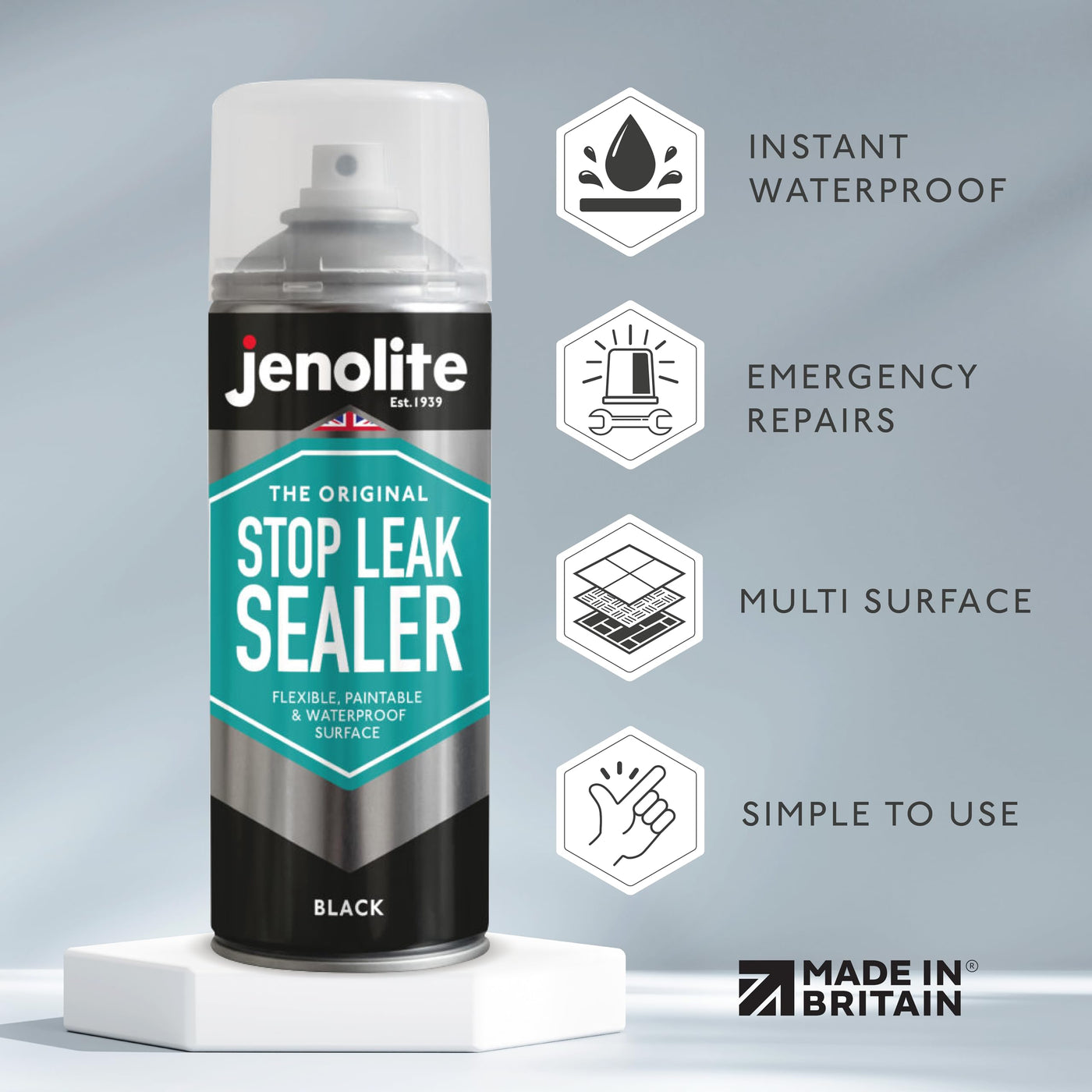 Jenolite Stop Leak Is The Instant Waterproof Sealant. Ideal For Sealing Leaks And Drips Fast. The Hardwearing, Flexible Formulation Has Been Specifically Developed To Fill & Seal Joints In Leaking Guttering, Downpipes, Pipework, Drains, Windows, Roofs And Other Leaking Areas. Stop Leak'S Gap Filling Properties Make It Perfect For The Sealing Of Leaking Joints, That Have Become Loose Due To Weather And Corrosion. Available In Black, White And Clear Finish.