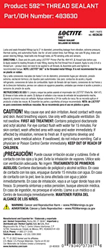 Loctite 592 Is An Opaque, Off-White, Thick Acrylic Dimethacrylate Ester Lubricating Thread Sealant Paste That Prevents Galling On Pipe Threads And Fittings. It Provides Immediate Low-Pressure Sealing And Allows The Readjustment Of Fittings Shortly After Assembly. The Joint Seals Against Pipe Burst Pressure After 72 Hours. Suits Applications Up To +399 F (+204 C). Unsuitable For Plastic Piping.Loctite 592 Thread Sealant Locks And Seals Threaded Fittings. Resists Leakage, Vibration Loosening, Moisture, Hydraulic Fluids, And Diesel Fuels. Lubricates Threads For Easy Assembly And Disassembly. Won'T Shred Or Wear Like Tape. Parts May Be Repositioned Up To 24 Hours After Application. Works Up To 400F.Loctite Automotive Aftermarket Products Are Not Just Oem-Specified, They Are Also Designed By Auto Manufacturers And Lab Tested. Engines Of Nearly Every Professional Race Car Are Assembled And Maintained With Loctite Brand Adhesives, Sealants, Gasket Makers, And Coatings. Whether Gasoline Or Diesel, From Bolts And Gaskets To Cooling Lines And Core Plugs, Henkel Products Are Used To Seal, Secure, And Repair Vehicle Components.