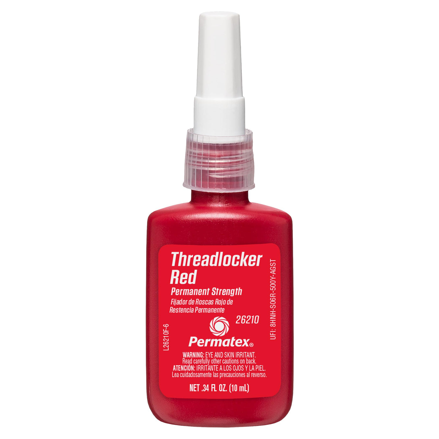 Q: What is Permatex 26210 Permanent Strength Threadlocker Red used for?A: Permatex 26210 Permanent Strength Threadlocker Red is designed for locking and sealing threaded fasteners to prevent loosening from vibration or shock. It is ideal for high-strength applications, making it suitable for automotive, industrial, and machinery uses.