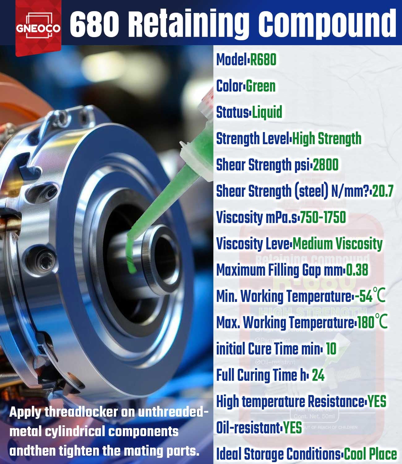 Q: What is ThreadLocker Green 680 used for?A: ThreadLocker Green 680 is designed to secure threaded connections in automotive, plumbing, and industrial applications. It prevents loosening due to vibration and protects against rust and corrosion.