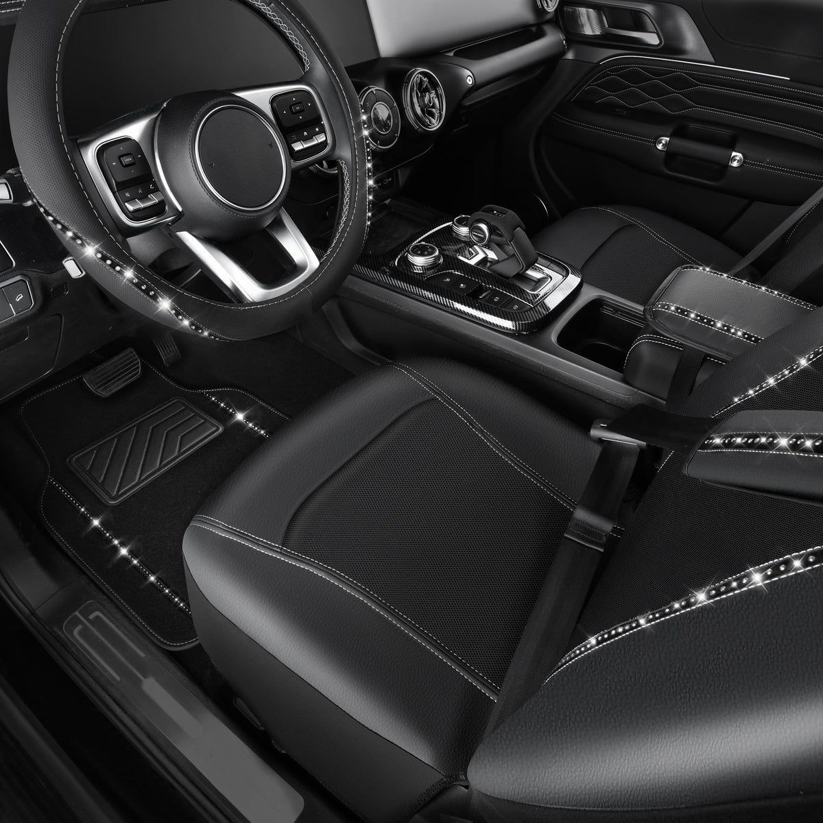 14 Pcs Package Include Car Seat Covers Front Seat, Car Floor Mats Full Set 4Pcs, 1Pc Steering Wheel Cover, 1 Pc Armrest Box Mat, 2 Diamond Seat Belt Covers, 1 Pc Car Headrest. Flashing Under The Light And Through The Windshield Makes Your Car Unique And Charming. Cut Car Accessories For Women Girl.