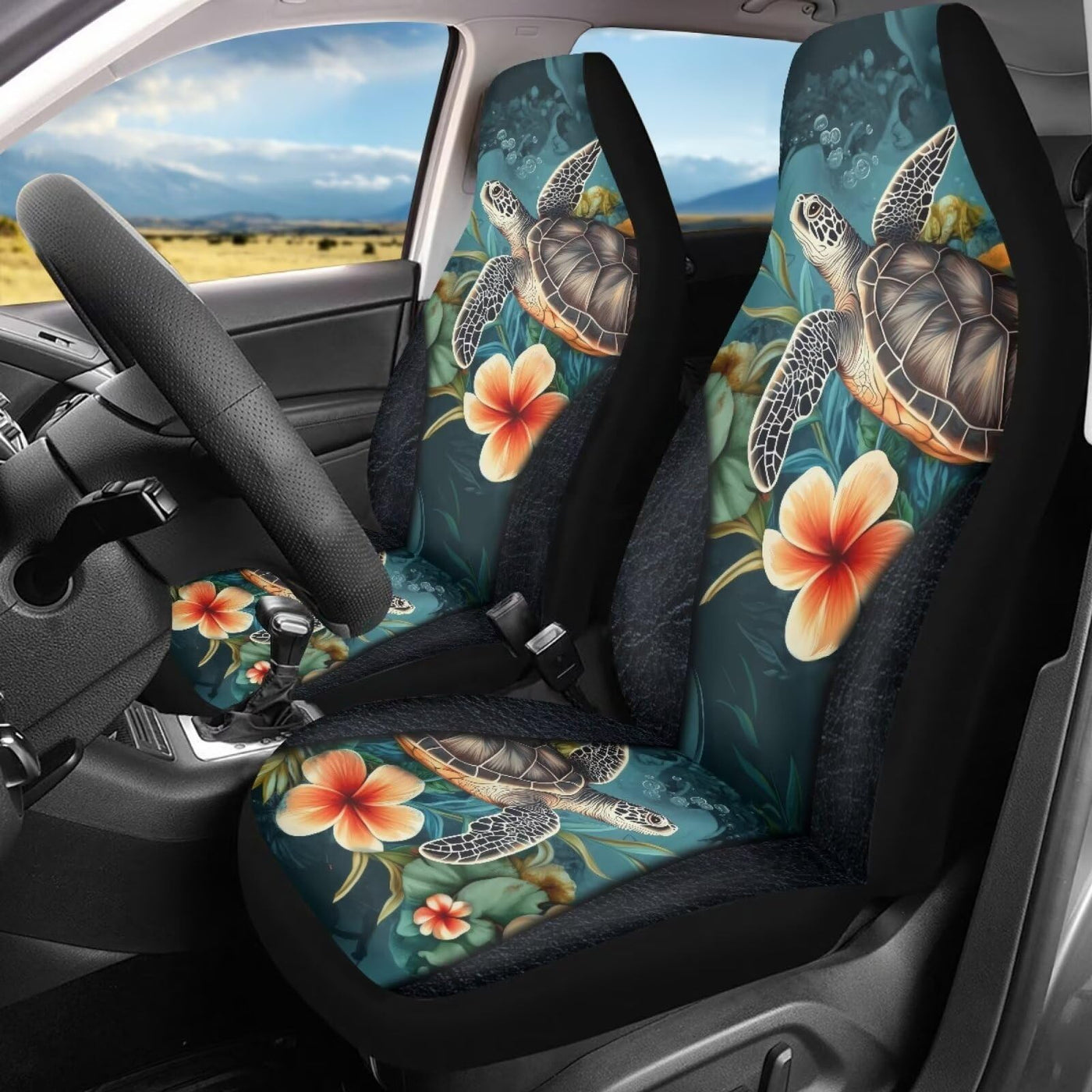 Bigcarjob Art Sea Turtle Car Seat Cover Set For Front Seat Only,2 Pack Animal Turtle Print Auto Front Seat Protector Saddle Blan