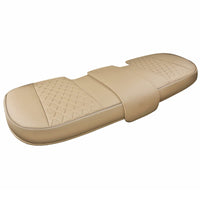 SPECIFICATION: - Style: Rear seat cover without backrest - Size: Largest long size: 55 inches, Smallest long size 50 inches - Thickness: 1 cm - Weight: 2.6 lbs/1.2kg - Surface material: PU Leather (ploy urethane) - Inner material: High resilience sponge PACKAGE CONTENTS: - Black Panther PU Leather Back Car Seat Cover Beige (3 parts)* 1 - Chucks * 10 INSTALLATION TIPS: Due to the car seat cover was packaged compactly when transport, its normal that the item has crease. Please don't worry, the seat cover material has good springback effect, after a period of time, the crease will flat again. CLEANING TIPS: Just use a towel to wipe it, if you can clean it with leather cleaning oil and towel, the effect will be better. KINDLY NOTE: - It fits 90% standard two-seat rear row. But it dosen't fit large vehicle models such as Toyota Sequoia/Tundra, Chevrolet Tahoe, Mercedes Benz S, BMW 7 Series, Lexus GX470. Before buying, please check your car safety seat belt lock is compatible with this seat cover. - There might be 1-2 cm errors due to manual measurement. - There might be slight color deviation due to different displays. - If there is anything missing, please contact us.