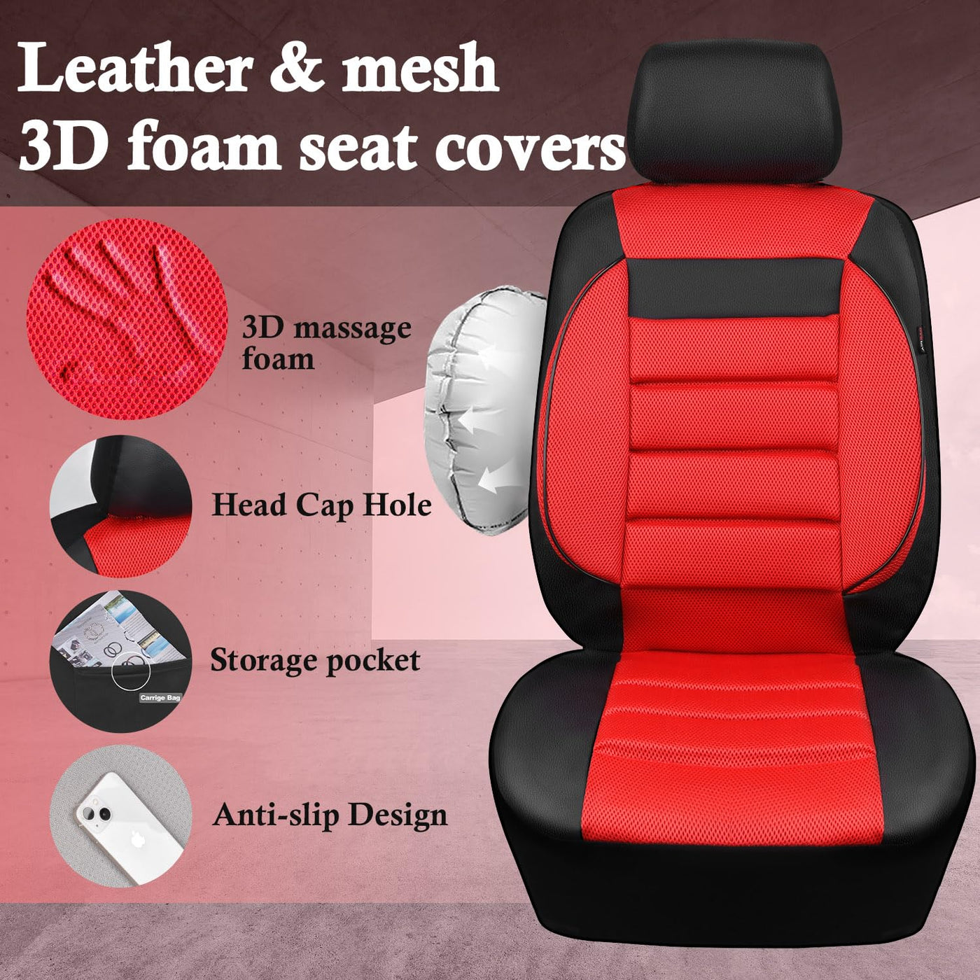 CAR PASS 3D Foam Leather Car Seat Covers Two Front Seats only, Air Mesh Thick Seat Covers, All Weather Car Seat Cover Comfort & Protection for Truck,SUV,Sedan,Van, Airbag Compatible (Black Red)