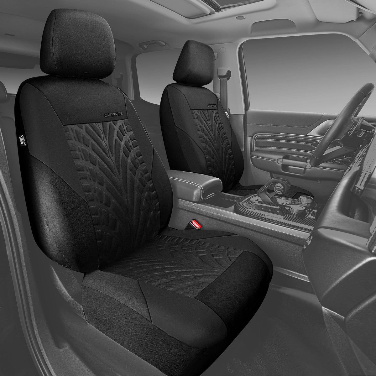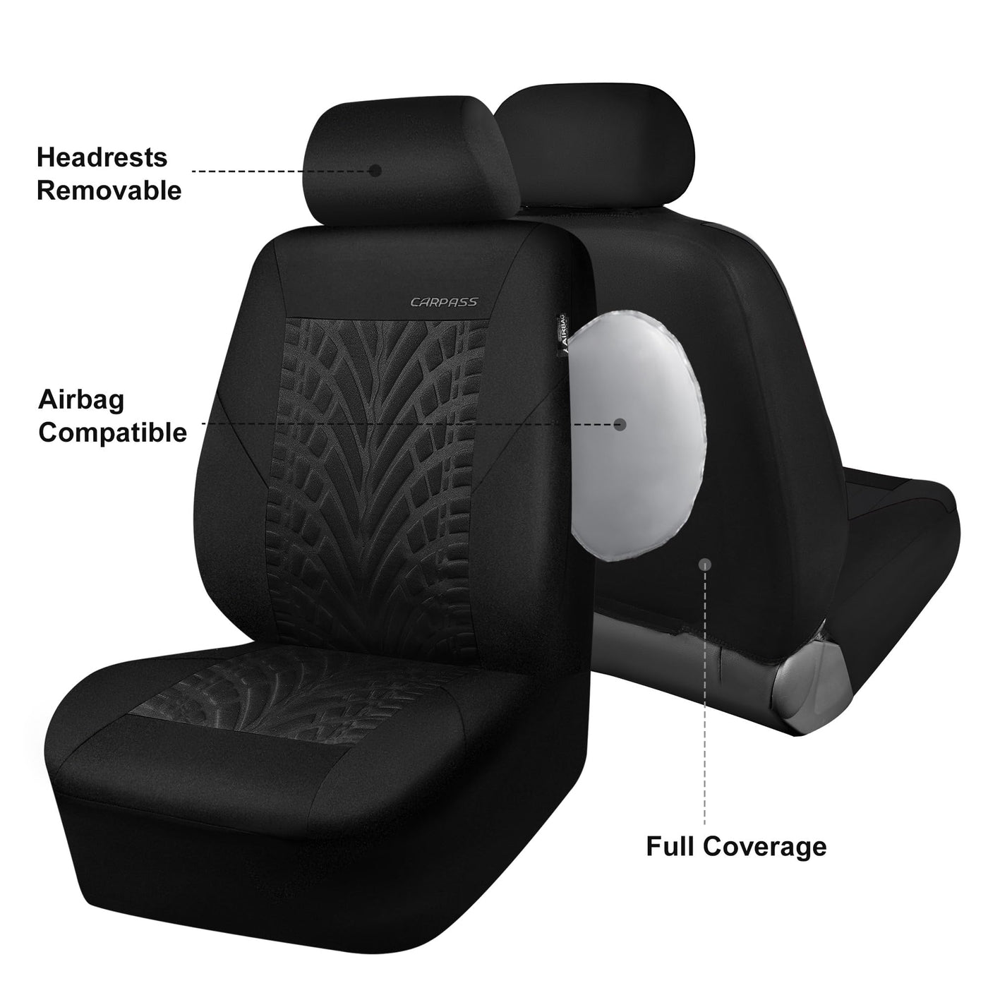 Car Pass Car Seat Covers Two Front Only For Car, 3D Tyre Print Automotive Interior Covers, Airbag Compatible, Quick Setup Universal Fit Seat Covers For Car, Truck, Suv(Black)