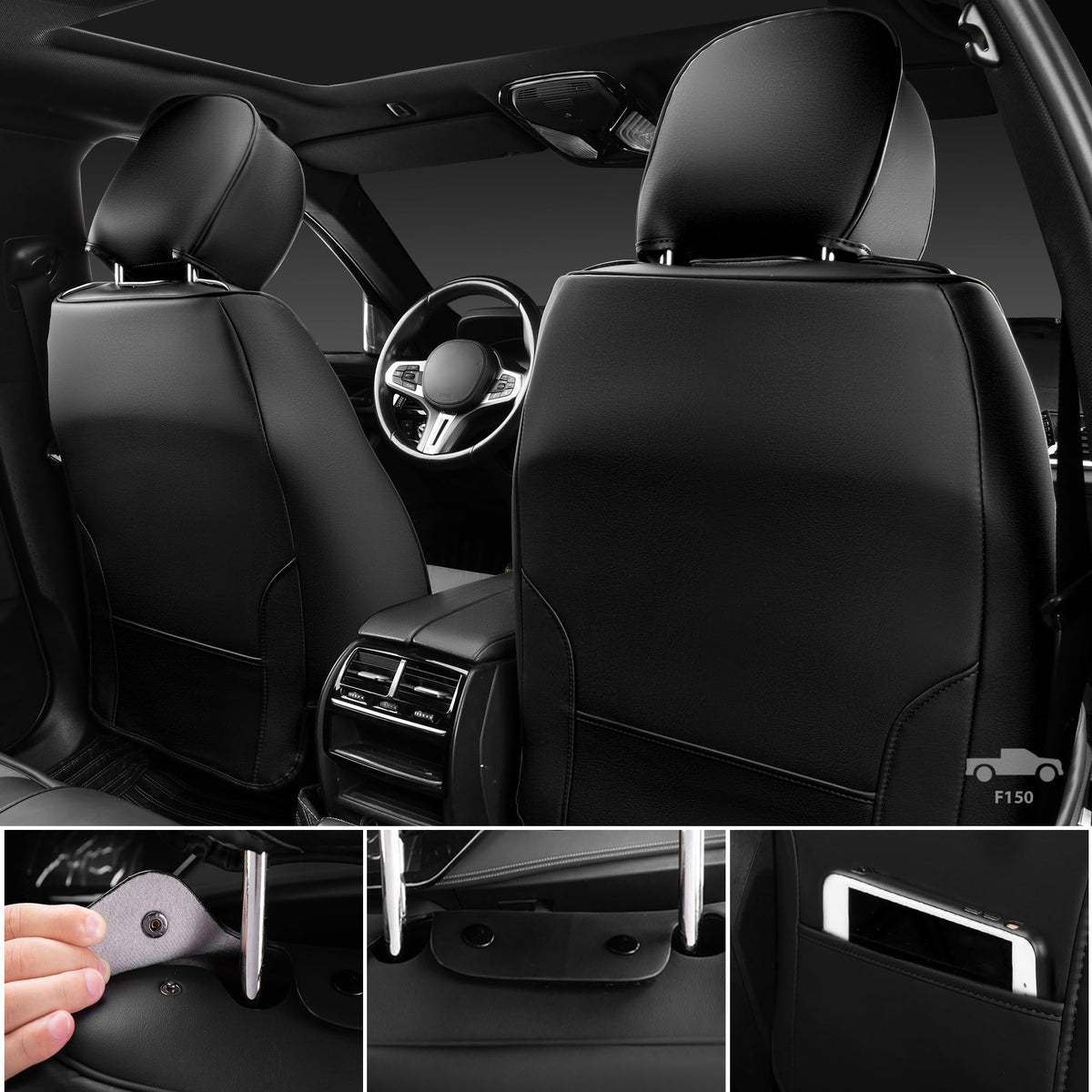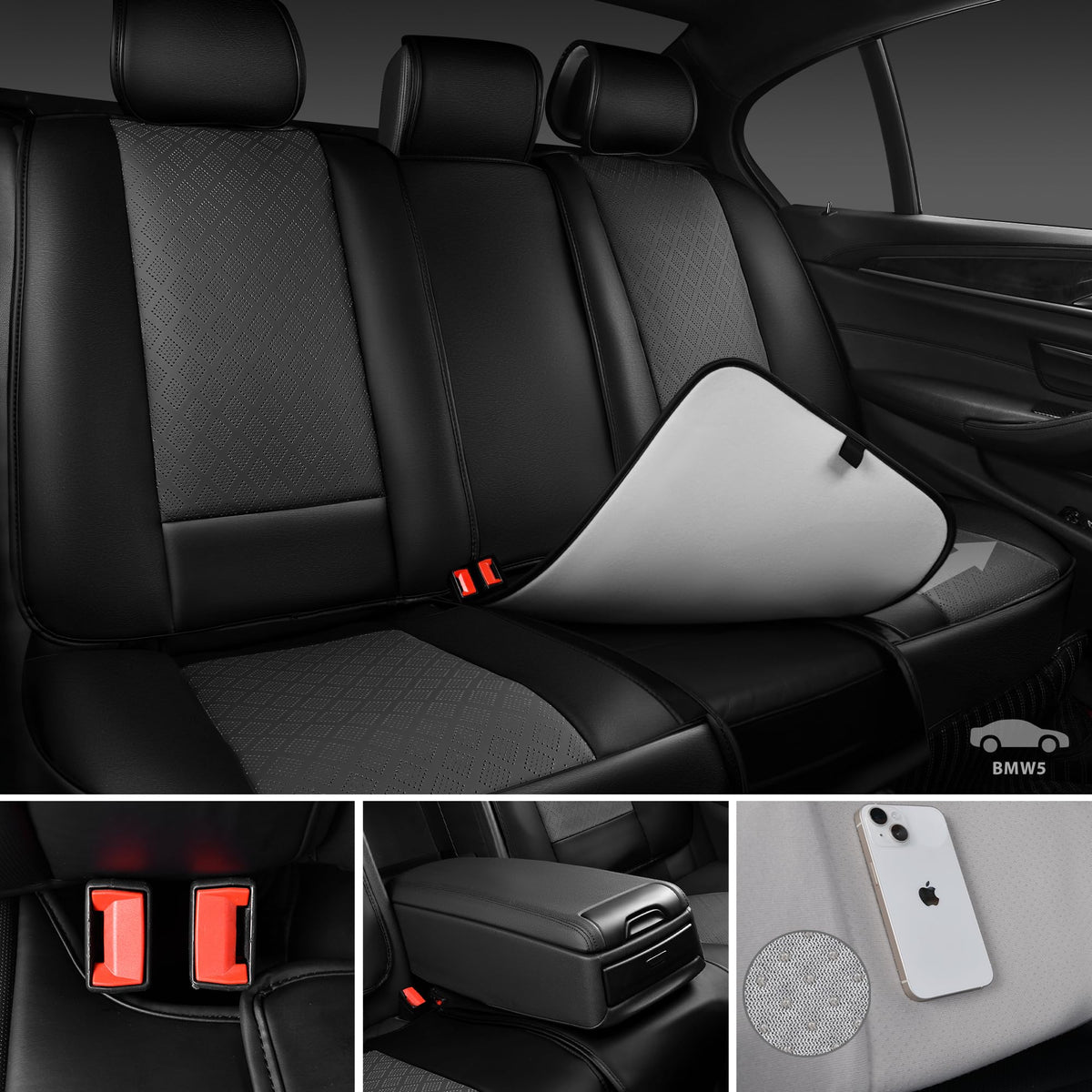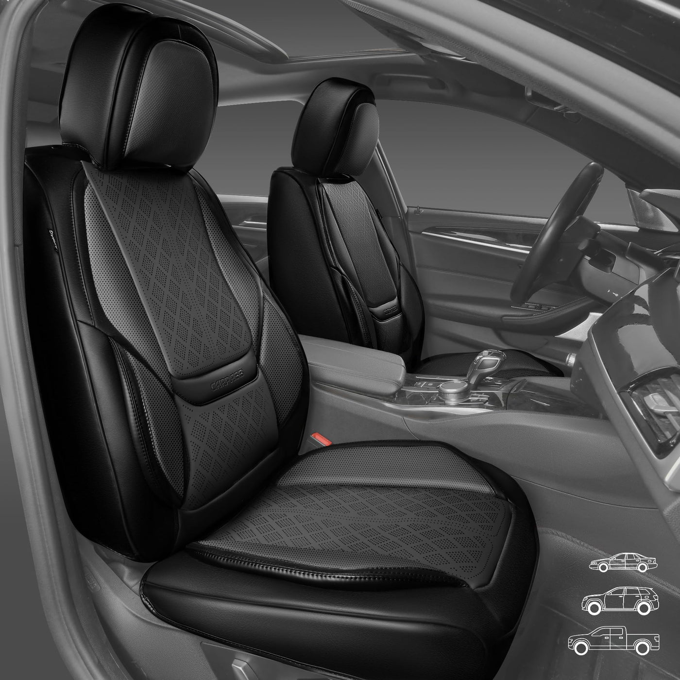 CAR PASS Nappa Leather Car Seat Covers 5 Seat, Luxury Lumbar Support Seat Cover Full Set, Waterproof Breathable Durable All Cove