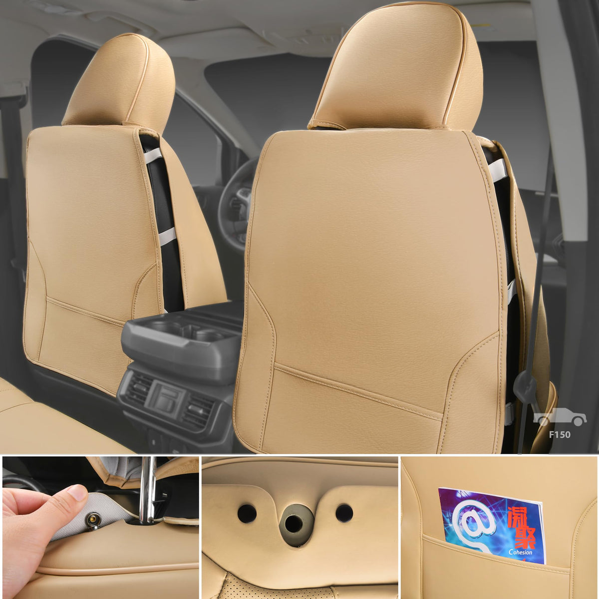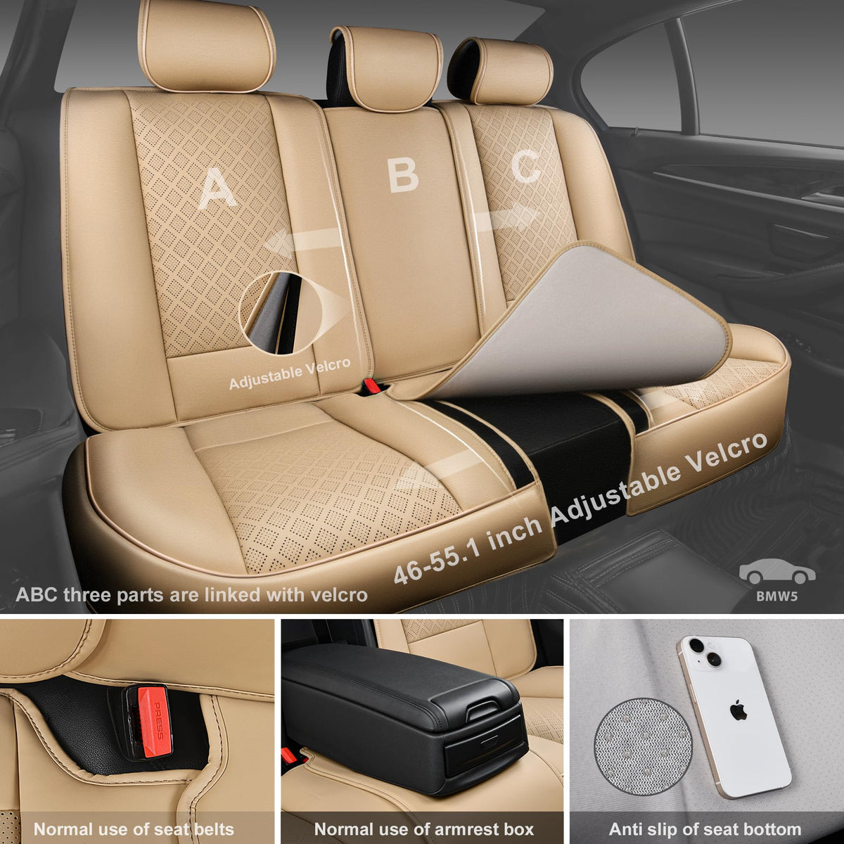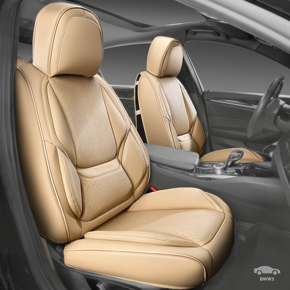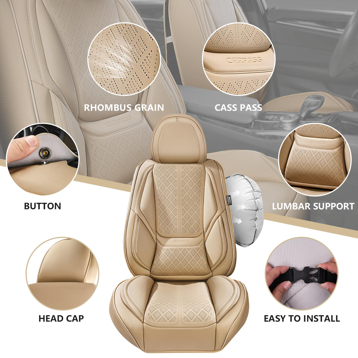 CAR PASS Nappa Leather Car Seat Covers 5 Seat, Luxury Lumbar Support, Waterproof Breathable Durable All Coverage Leatherette Sea