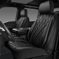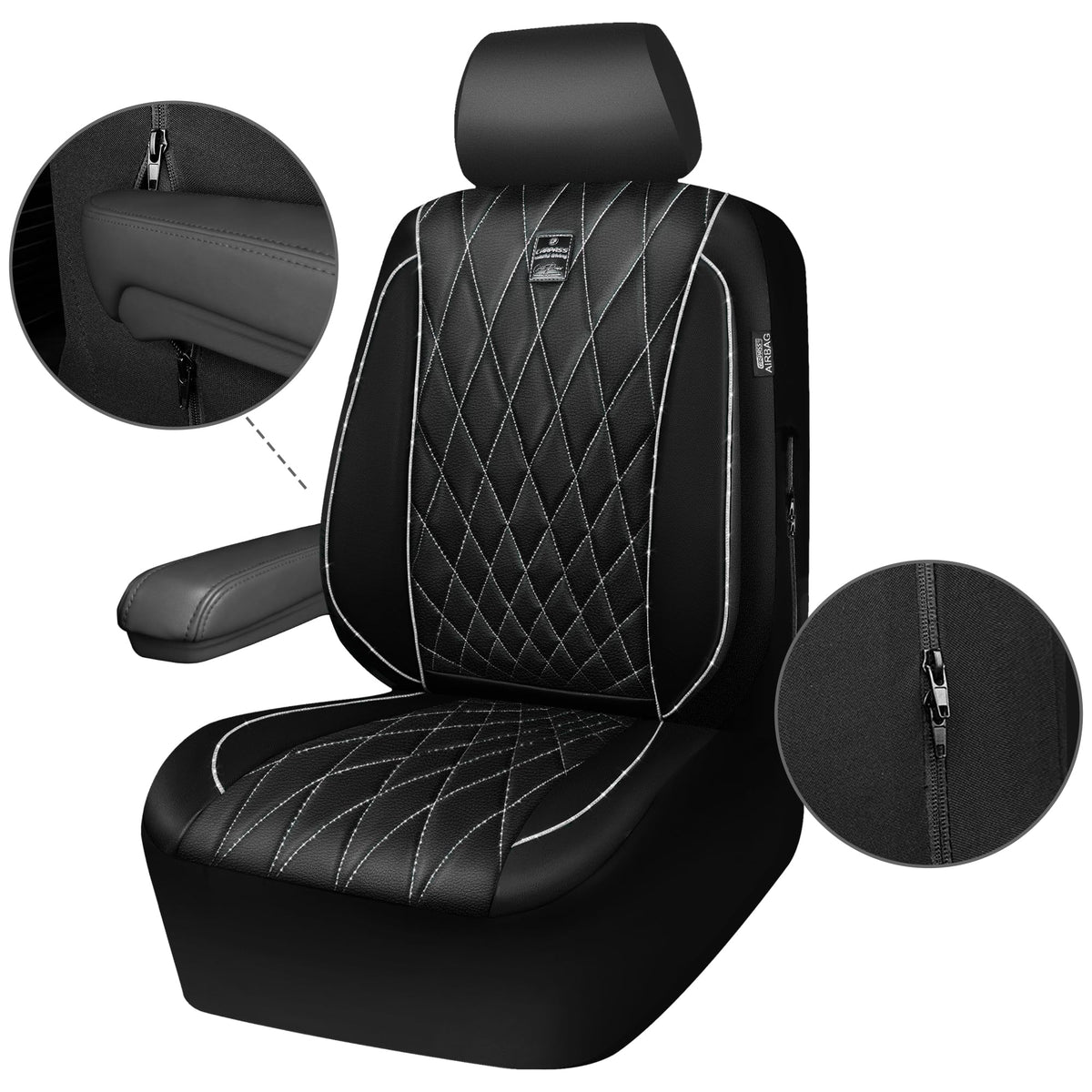 CAR PASS Piping Luxury Leather Two Front Car Seat Covers,Silver Glitter Waterproof Seat Cover Compatible with Front Seat Armrests,Universal Fit for Suvs,Vans,Trucks,Airbag Compatible(Black and Silver)