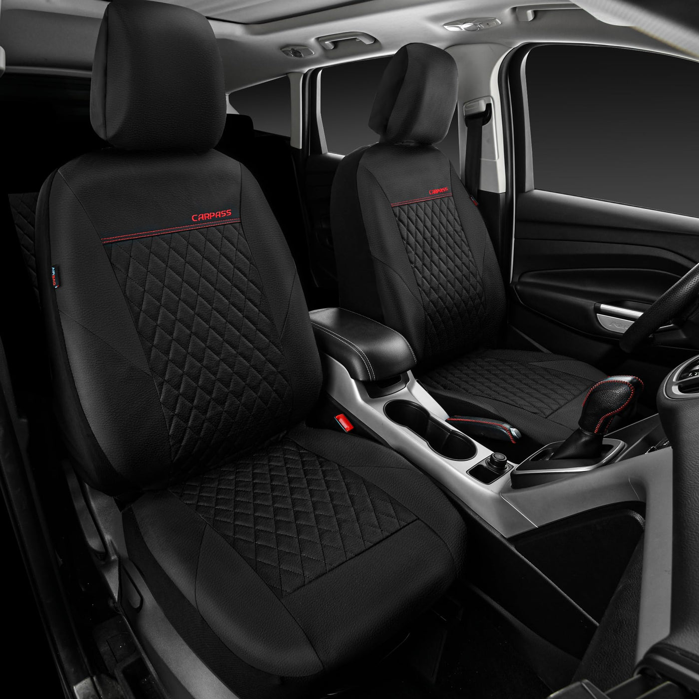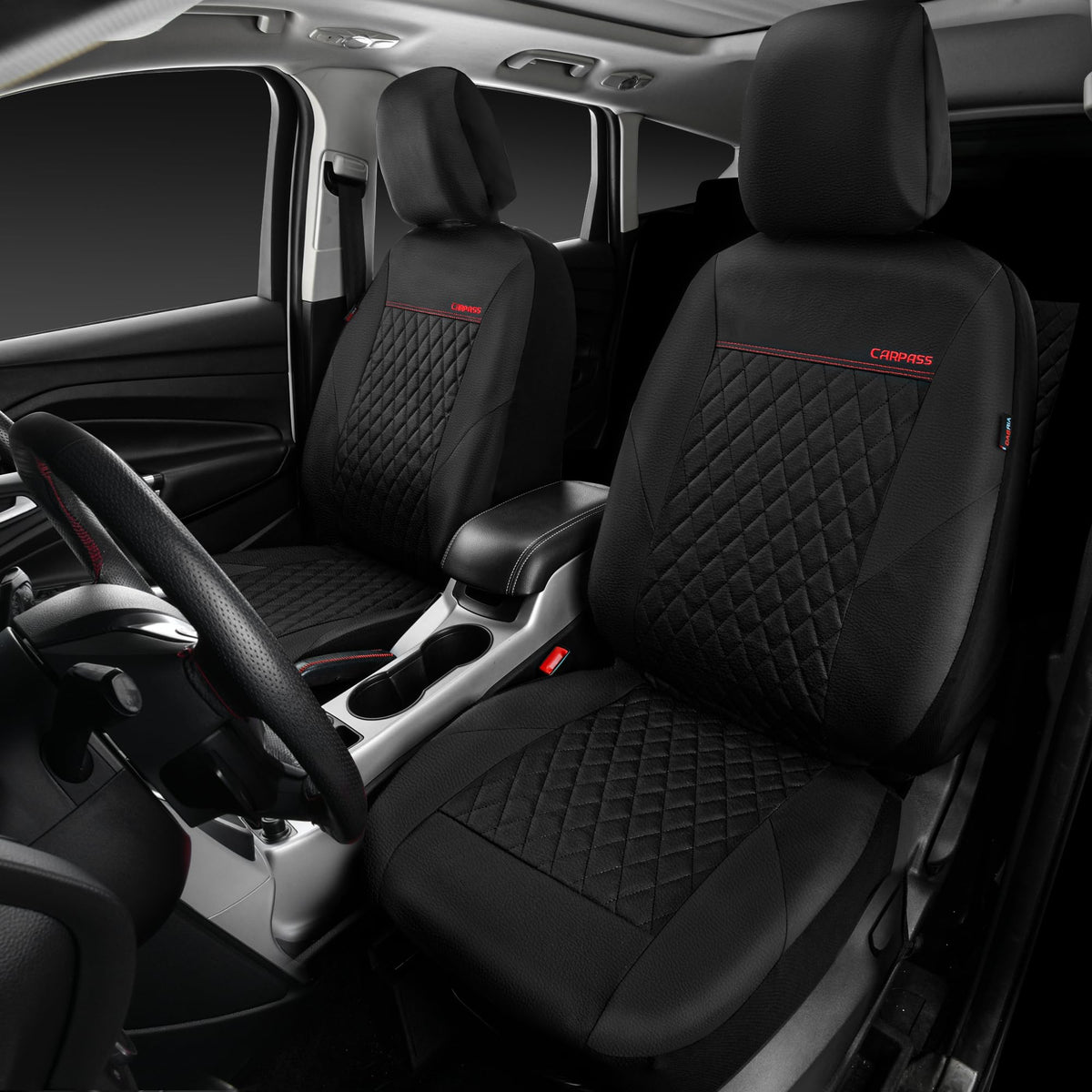 ?CAR SEAT COVERS?Premium Breathable Leather with pretty Made.Black leather Perfectly match your interior look.Ensure your seat covers will last for many years to come. Refresh your interior look. Beautiful design with good quality.Applicable for Most Sedans,Cars,SUVs,Vans,Trucks. | ?RHOMBOID GRAIN DESIGN?Rhomboid grain design provides you with excellent breathability to keep you cooler on the road,Beautiful design with good quality. | ?AIRBAG COMPATIBLE?Airbag compatible use. Perfectly fit for most of vehicles with the seat covers easy installation design. We have the exclusive patent about the blast of airbag for the seat covers in case of emergence. | ?EASY TO INSTALL?Includes two front seat covers and two removable headrests. ideal for the driver's and front passenger's seats in your vehicle. Protect your car's seats from scratches, dirt, dander, and spills. The Seat covers are removable and washable. | ?CAR PASS EXCELLENT SERVICE?Our brand is CAR PASS and we offer high quality car seat covers.We put product quality and your trust first. We do our best to provide you with quality service.