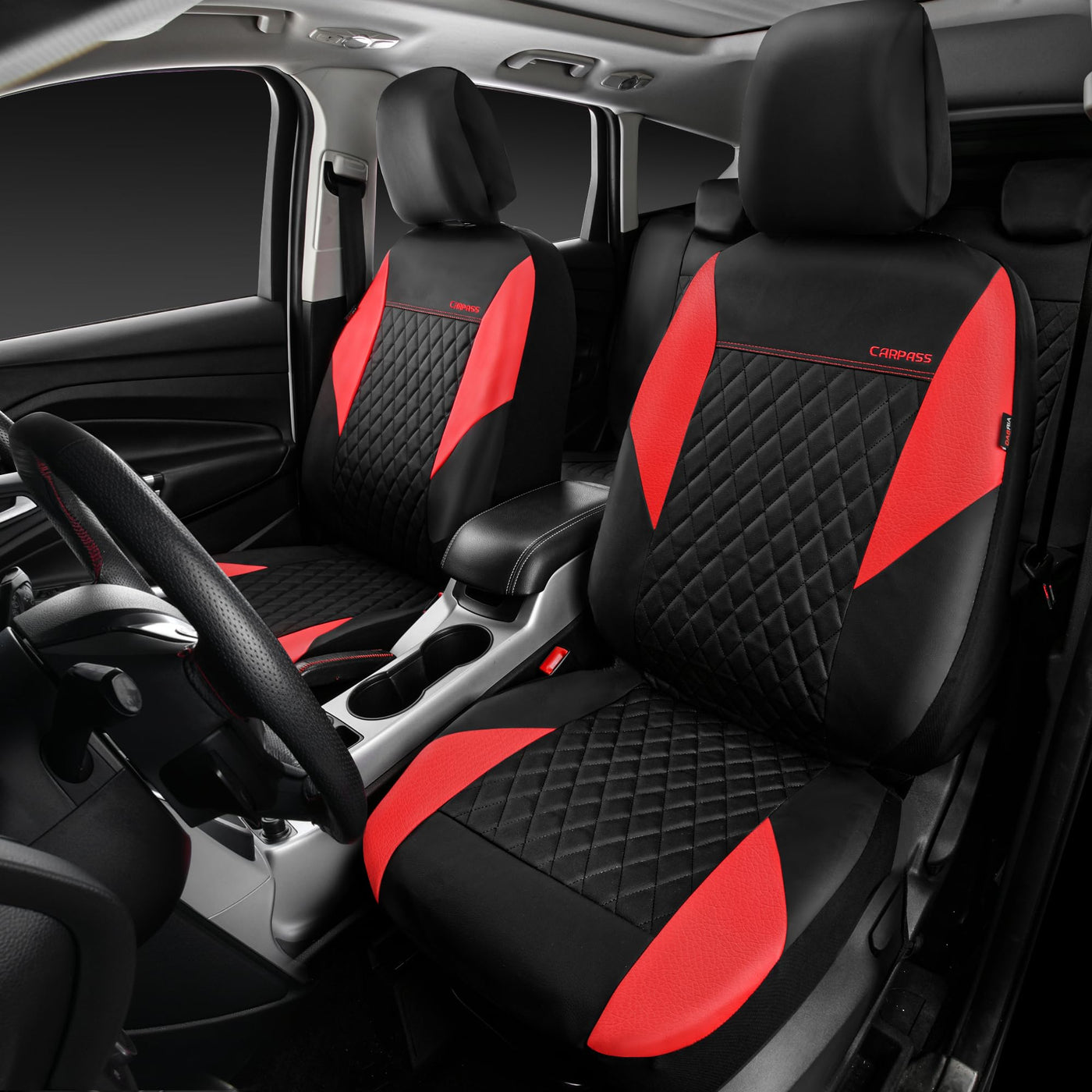 Car Pass Red Leather Seat Covers Full Set-Universal Quilting Pretty Girly Car Seat Cover With 5Mm Composite Sponge Inside,Airbag