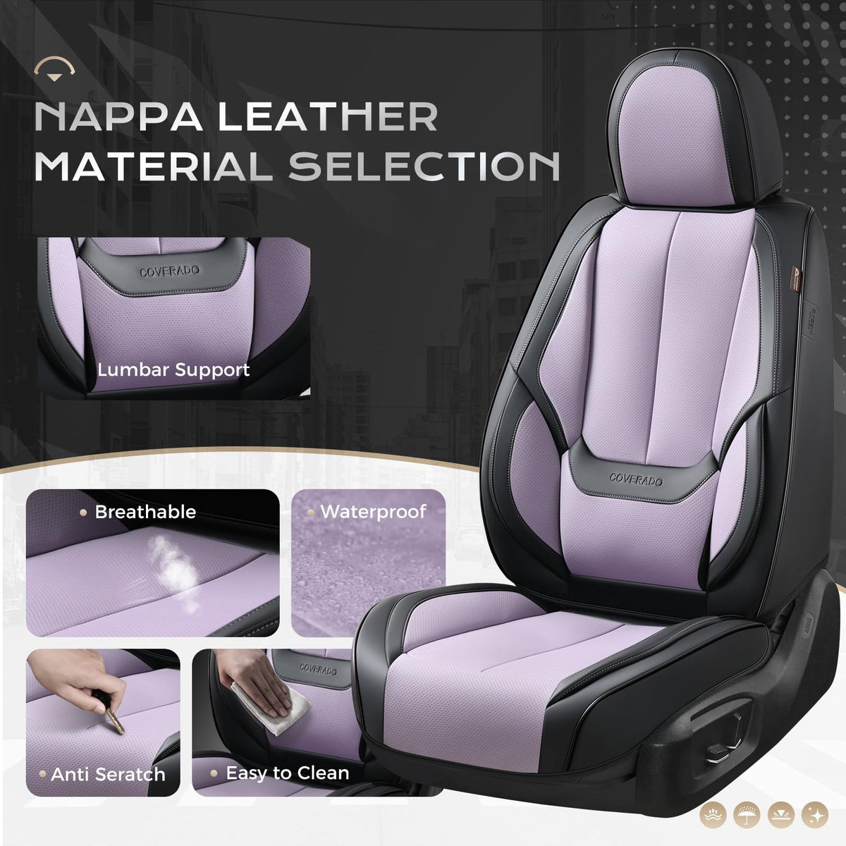 Coverado Car Seat Covers Full Set, Car Seat Protector Waterproof, Nappa Leather Car Seat Cushion, Seat Covers for Cars, Front Se