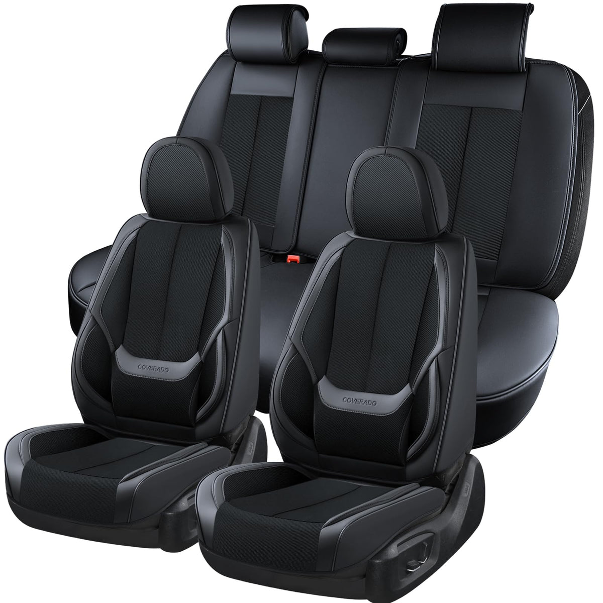 Coverado Front And Back Seat Covers 5 Pieces, Full Set Universal Seat Covers For Cars, Breathable Fabric&Leather Car Seat Protec