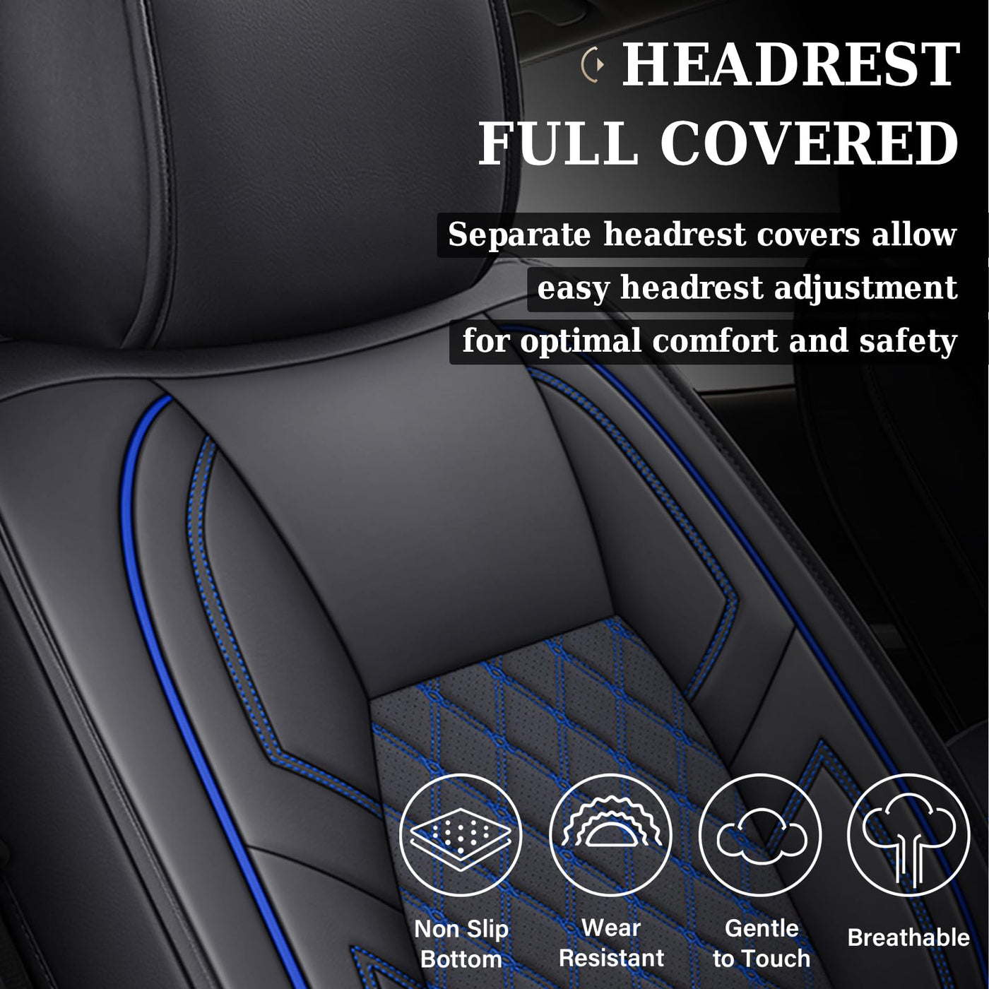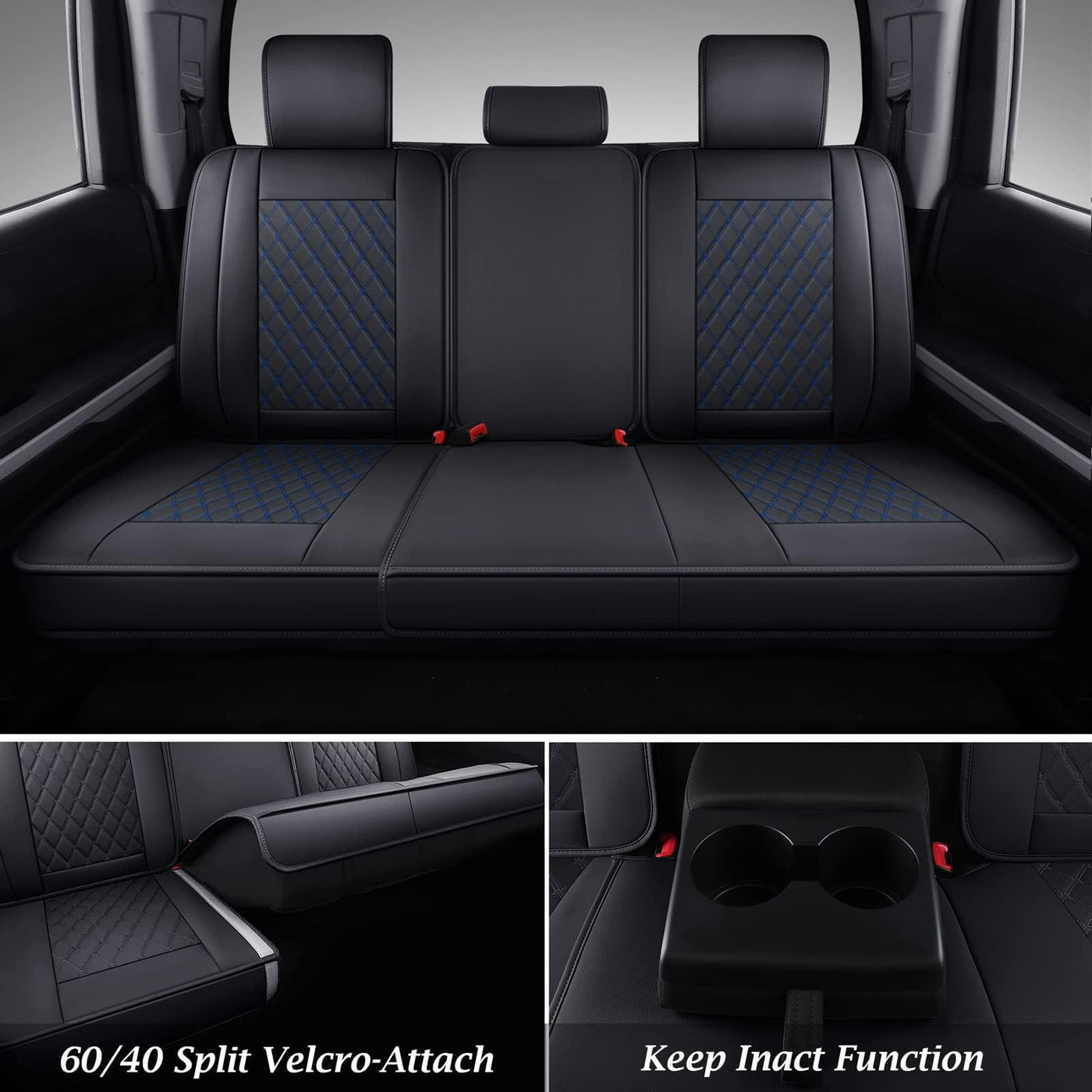 Coverado Full Set Seat Covers For Toyota Tundra, Custom Fit Leather Truck Seat Protectors For 2007-2021 Tundra (Blue)