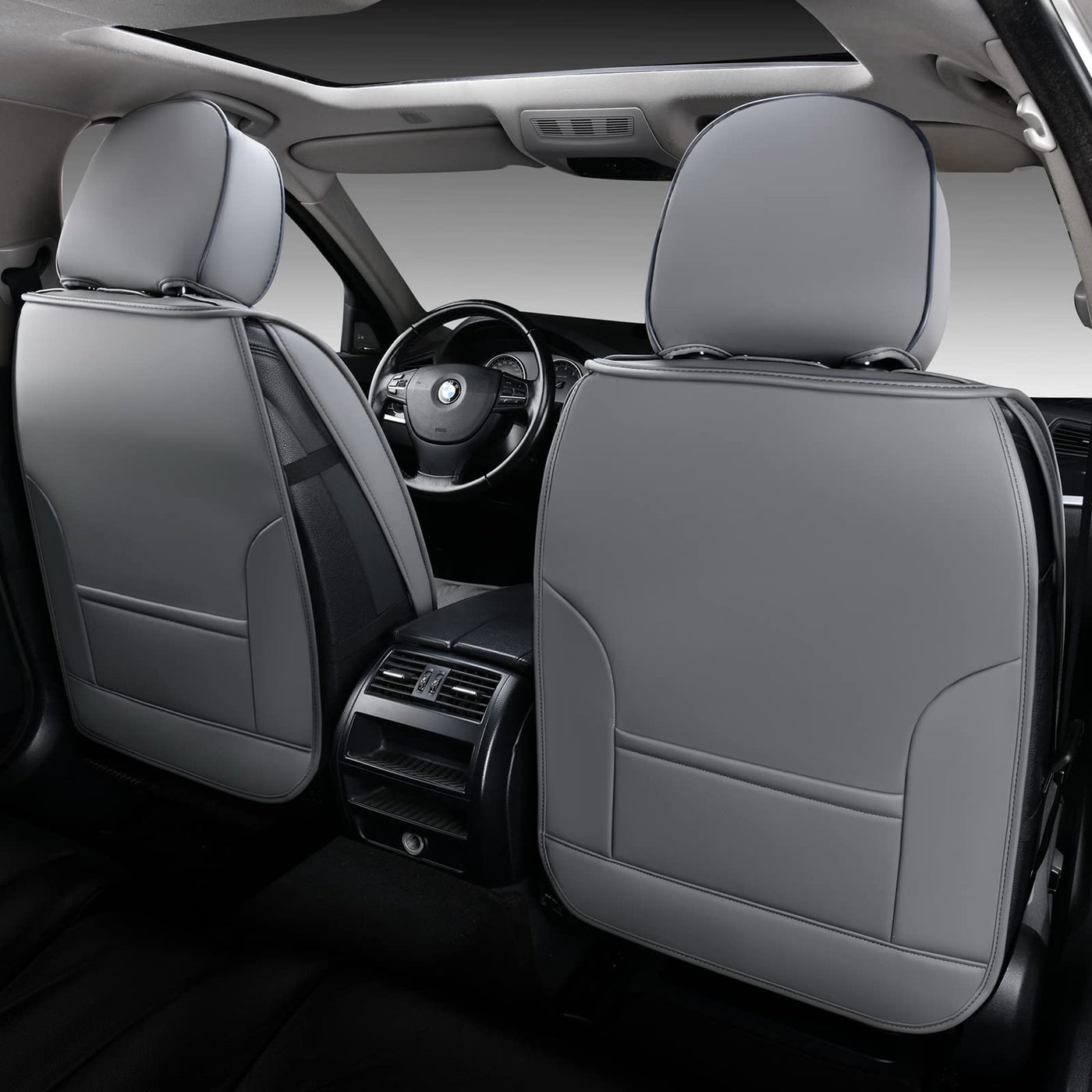Coverado Seat Covers, Car Seat Covers Full Set, 5 Seat Universal Leather Seat Covers For Cars, Seat Covers Waterproof, Front And Back Car Seat Protector, Auto Seat Covers Fit For Most Vehicles, Gray