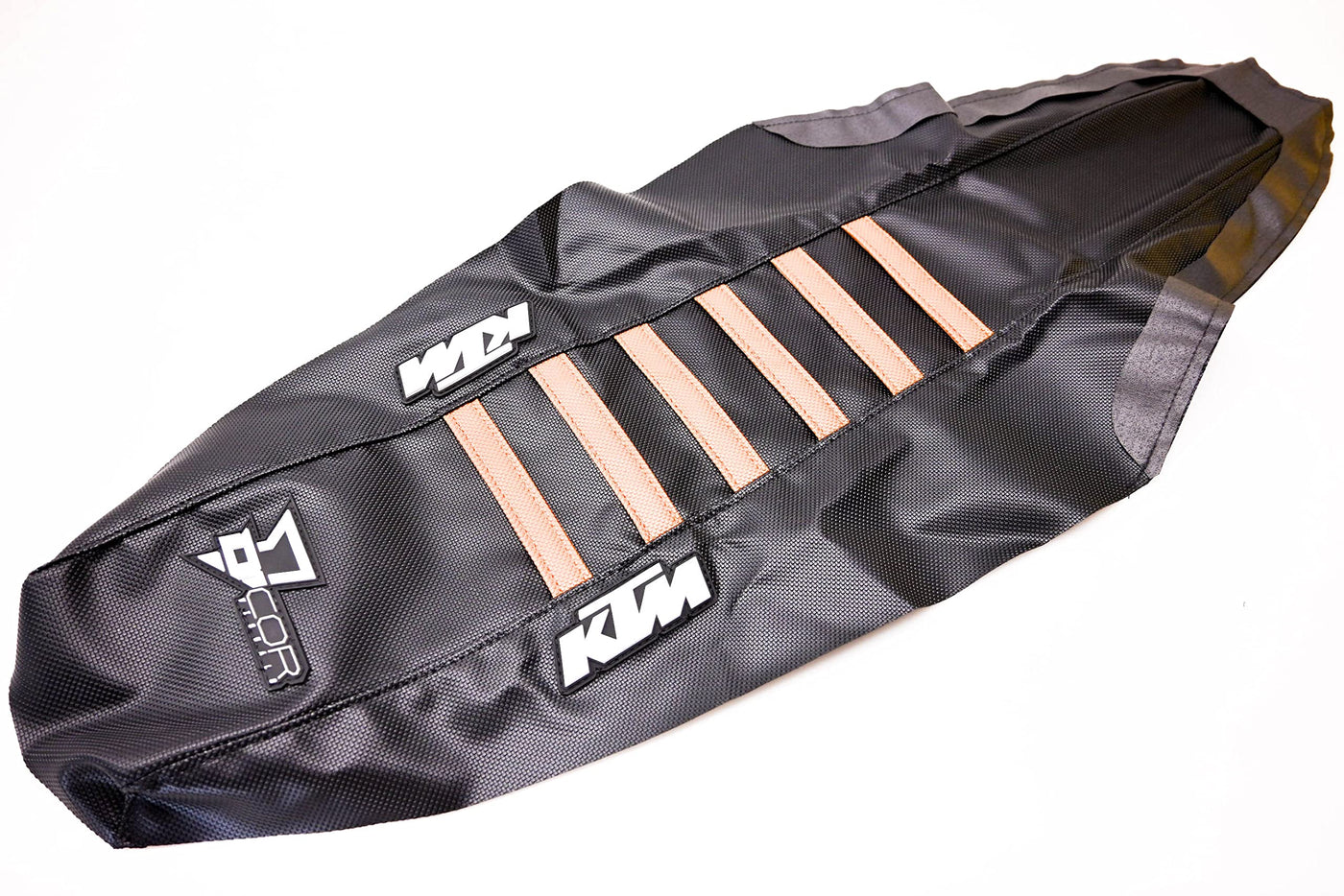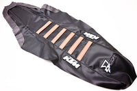 Q: What models is the D'Cor Visuals Factory Ribs Seat Cover compatible with?A: The D'Cor Visuals Factory Ribs Seat Cover is designed to fit various KTM models from 2016 to 2018, including the KTM 125 SX, 150 SX, 250 SX, 250 SX-F, 250 XC-F, 350 SX-F, 350 XC-F, 450 SX-F, and 450 XC-F.