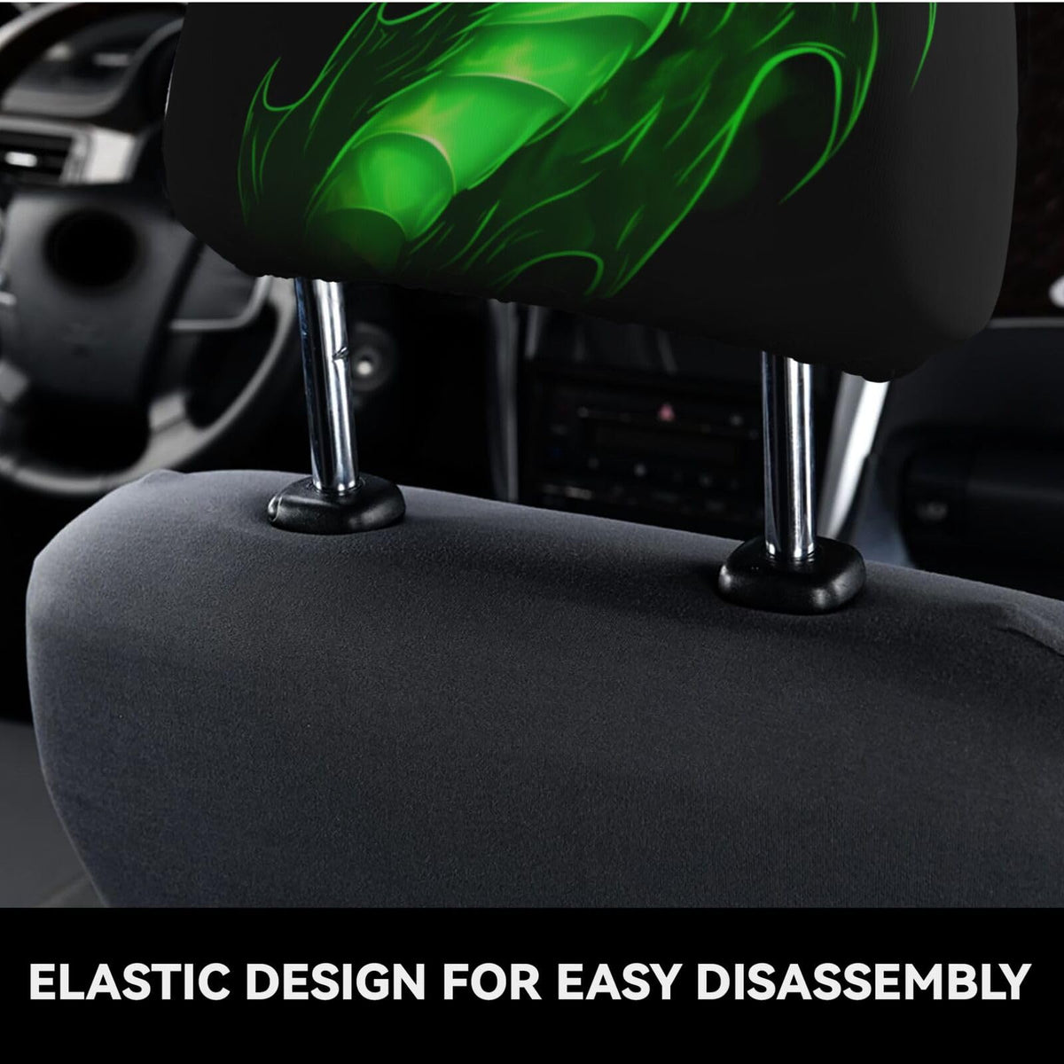 Dujiea 2 Pack Dragon Green Fire Car Headrest Covers, Universal Soft Car Seat Head Rest Protector, Vehicle Accessories Fabric Hea