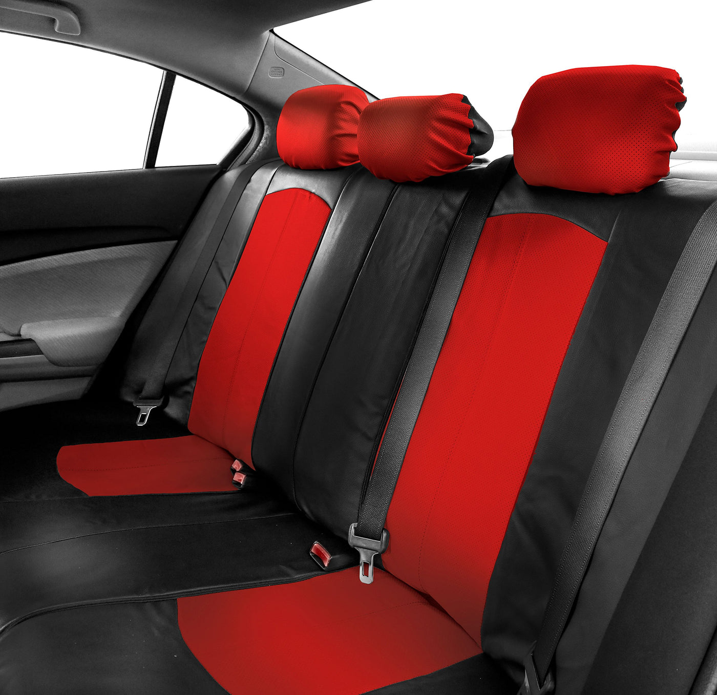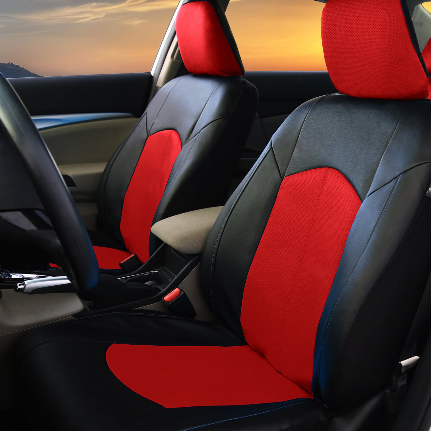 FH Group Automotive Seat Cover Highest Grade Faux Leather Red Black Full Set, Combo Car Seat Cover Design Airbag Compatible Spli