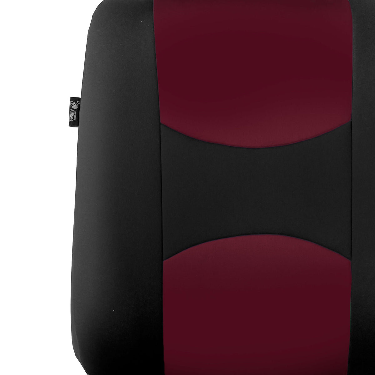 FH Group Bright Flat Cloth Full Set Car Seat Covers, Burgundy/Black- Fit Most Car, Truck, SUV, or Van