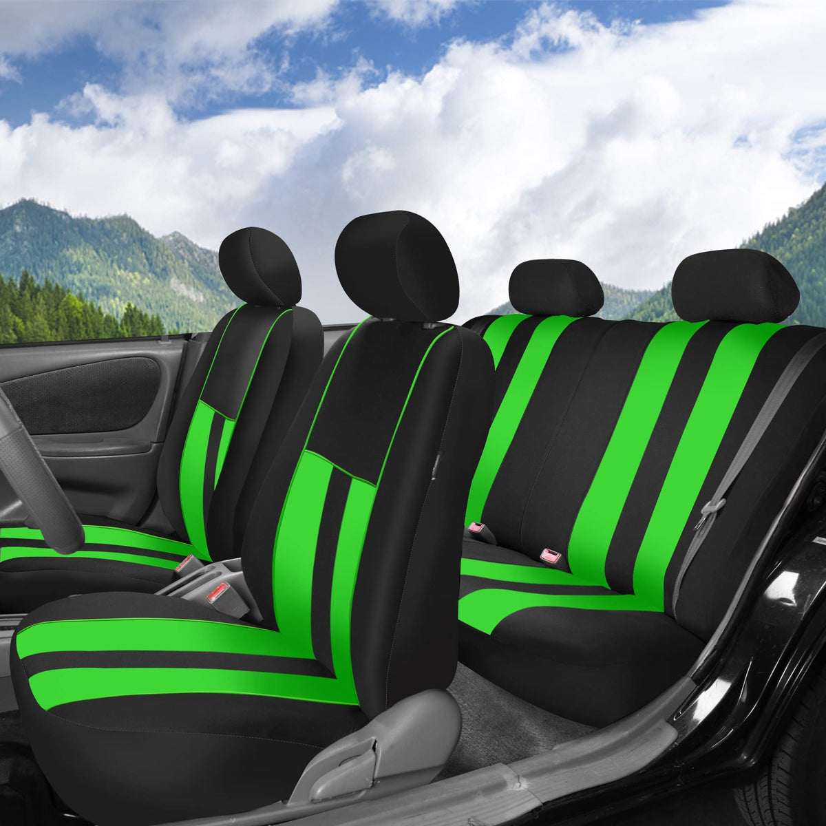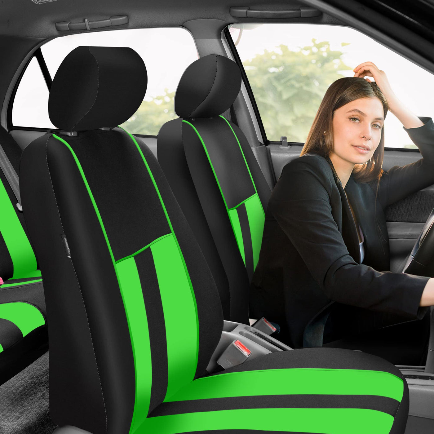 FH Group Car Seat Covers Full Set Cloth - Universal Fit, Automotive Seat Covers, Low Back Front Seat Covers, Airbag Compatible, Split Bench Rear Seat, Washable Car Seat Cover for SUV, Sedan, Van Green