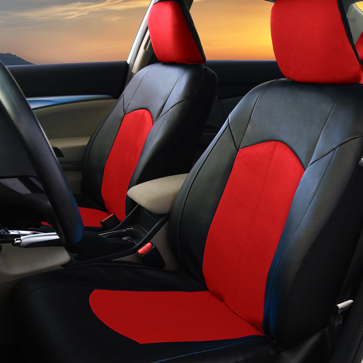FH Group Car Seat Covers Highest Grade Faux Leather Seat Covers Airbag Compatible Red Automotive Seat Cover Front Seats Only with Gift Universal Fit Interior Accessories for Cars Trucks and SUVs