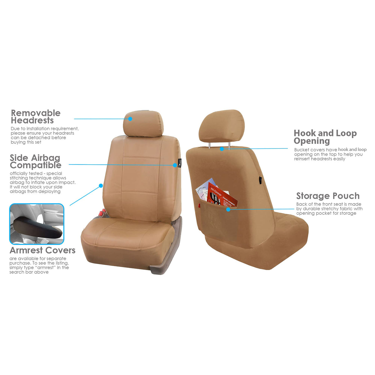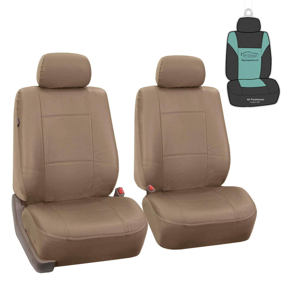 FH Group Classic PU Leather Pair Set Car Seat Covers, Airbag Compatible with Gift - Universal Fit for Cars Trucks & SUVs (Solid