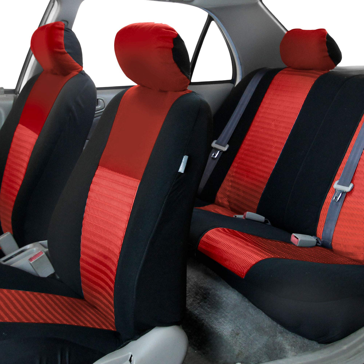 Fh Group Trendy Elegance Front Set Seat Covers, Airbag Compatible (Red/Black)- Universal Fit For Cars, Trucks & Suvs
