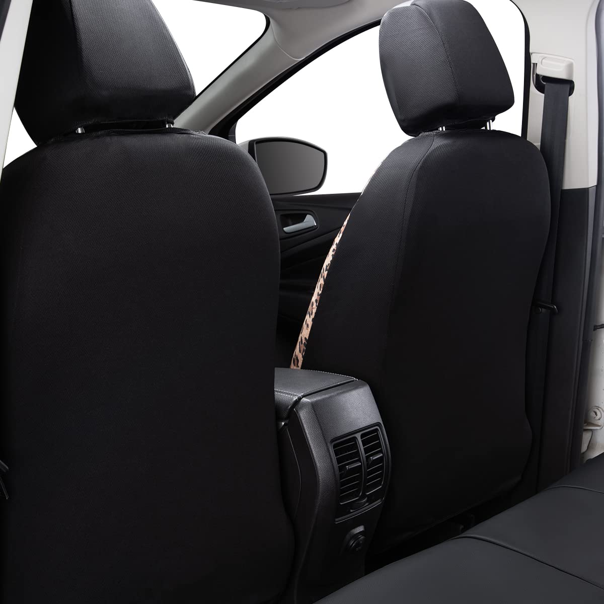Flying Banner Car Seat Covers Protects Leopard Printing Velvet Faux Leather Carbon Fiber Front And Rear Bench (Leopard Brown Bla