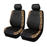 Flying Banner Car Seat Covers Protects Leopard Printing Velvet Faux Leather Carbon Fiber Front Pair Carbon Fibre (Leopard Black,