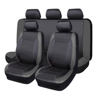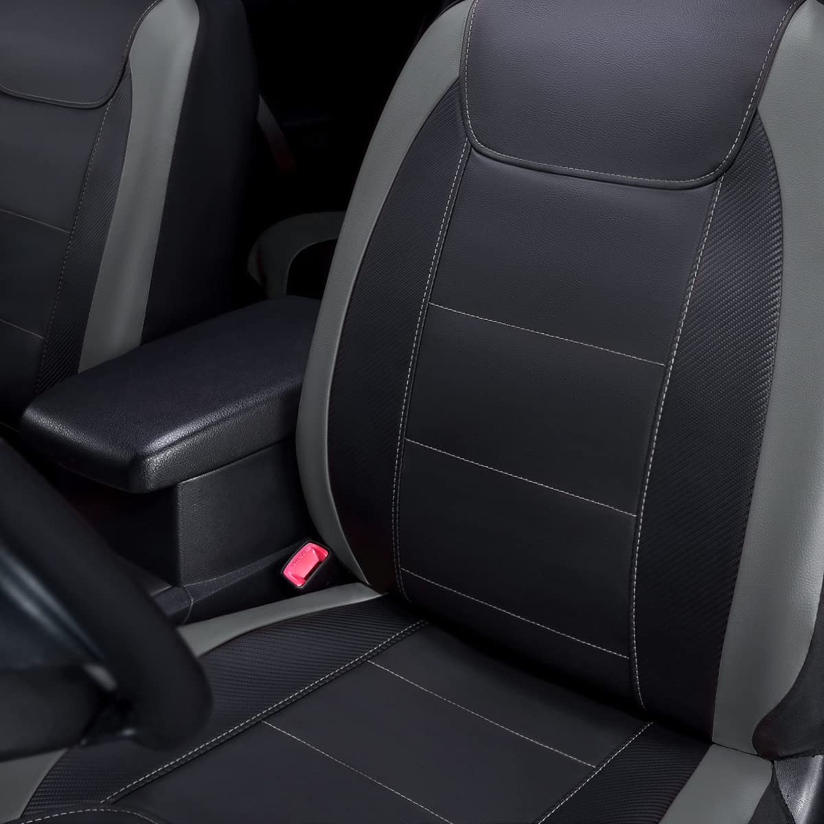 Flying Banner Car Seat Covers Protects Water Proof Faux Leather Carbon Fiber Front And Rear Bench (Black Gray, Full Set - 8Pcs)