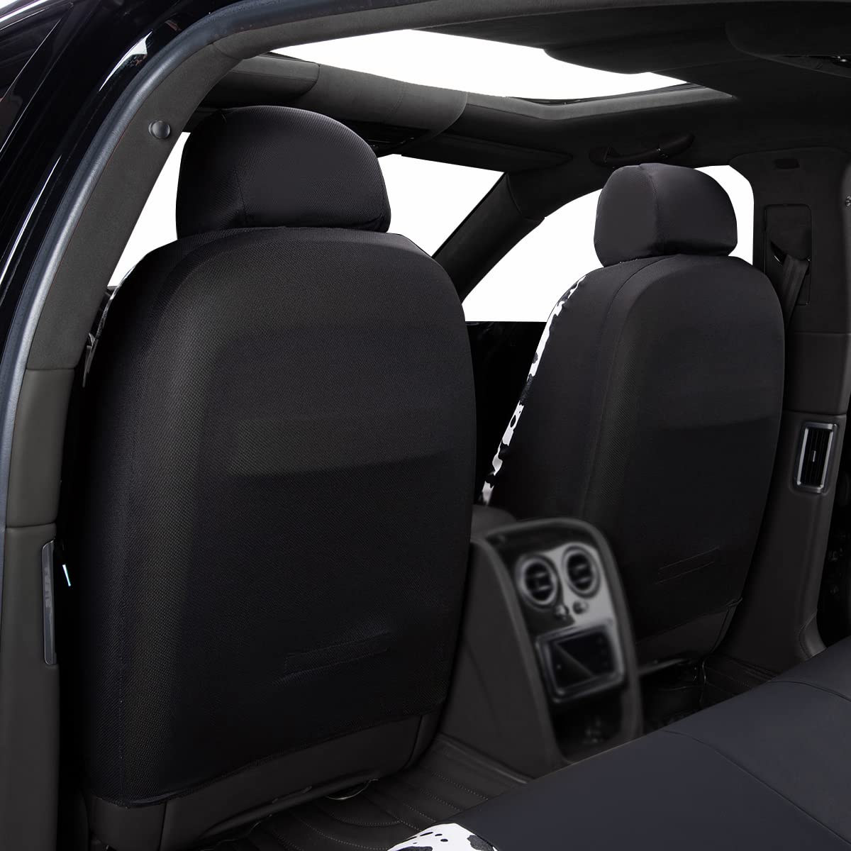 Flying Banner Car Seat Covers Protects Water Proof Faux Leather Carbon Fiber Fronts Rear Bench Covers (Cow Black, Full Set - Com