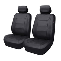 Flying Banner Car Seat Covers Protects Water Proof Faux Leather Carbon Fiber Fronts Solid Black (Solid Black, Front Pair)