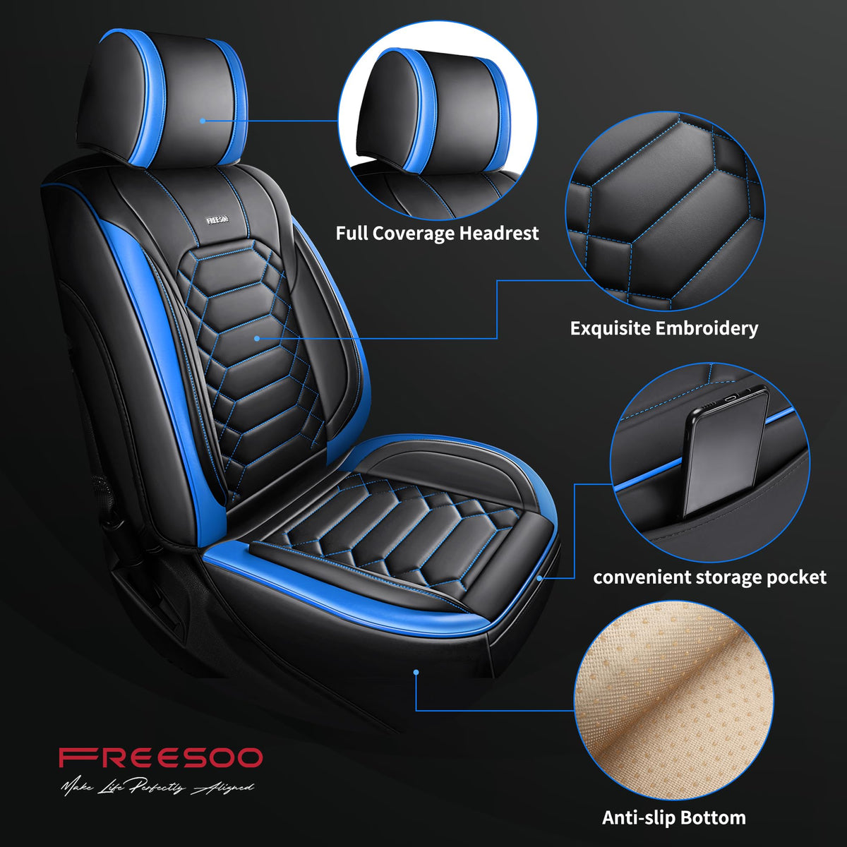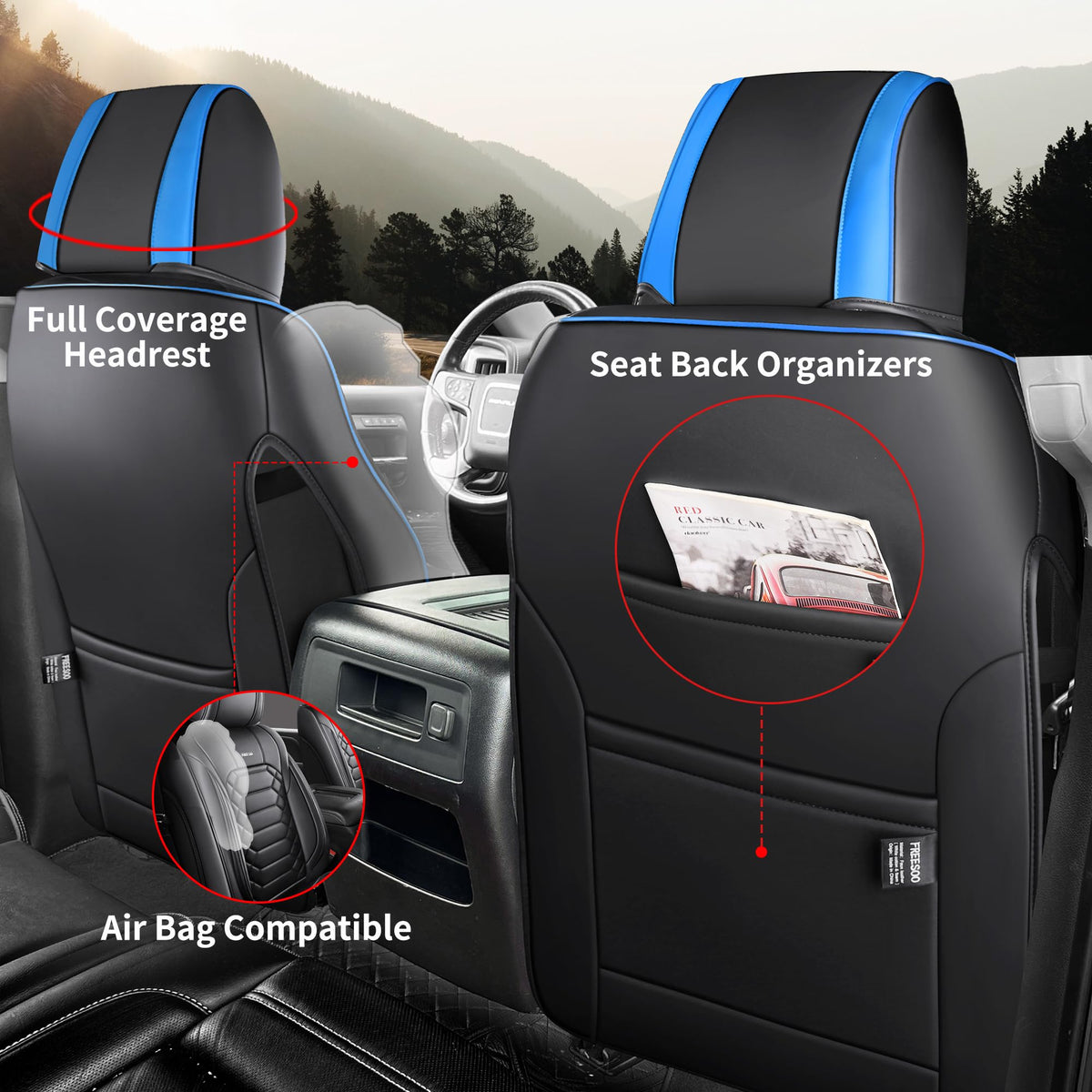 FREESOO Silverado 2014-2018 Faux Leather Full Set Seat Covers, Fit for Chevy Silverado GMC Sierra 1500 2500 3500 Crew Cab Waterp