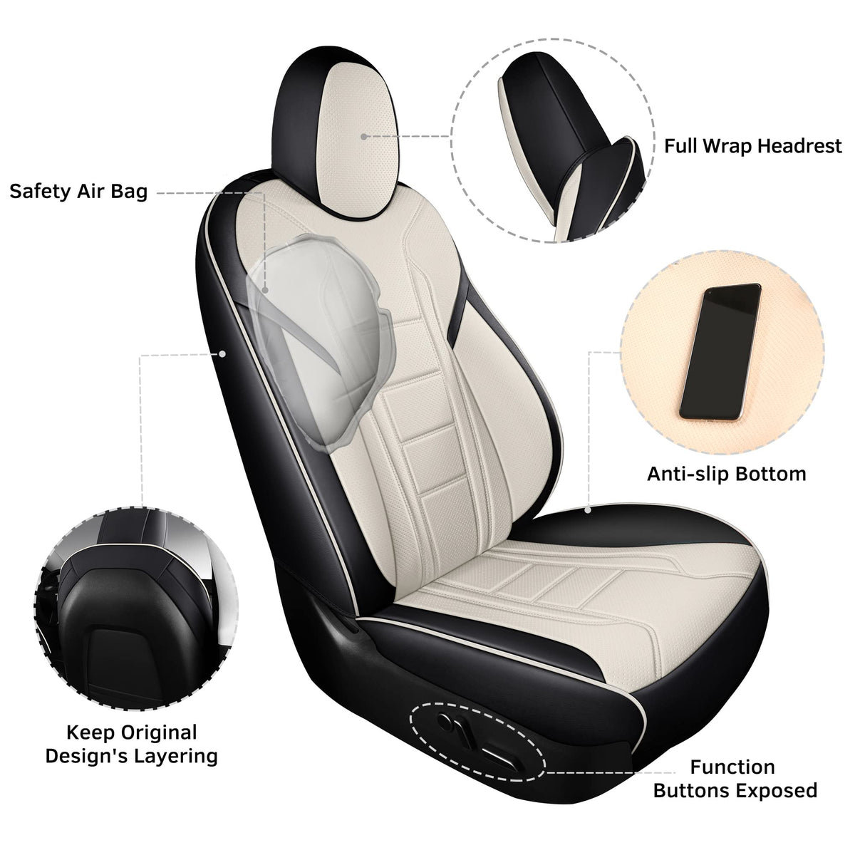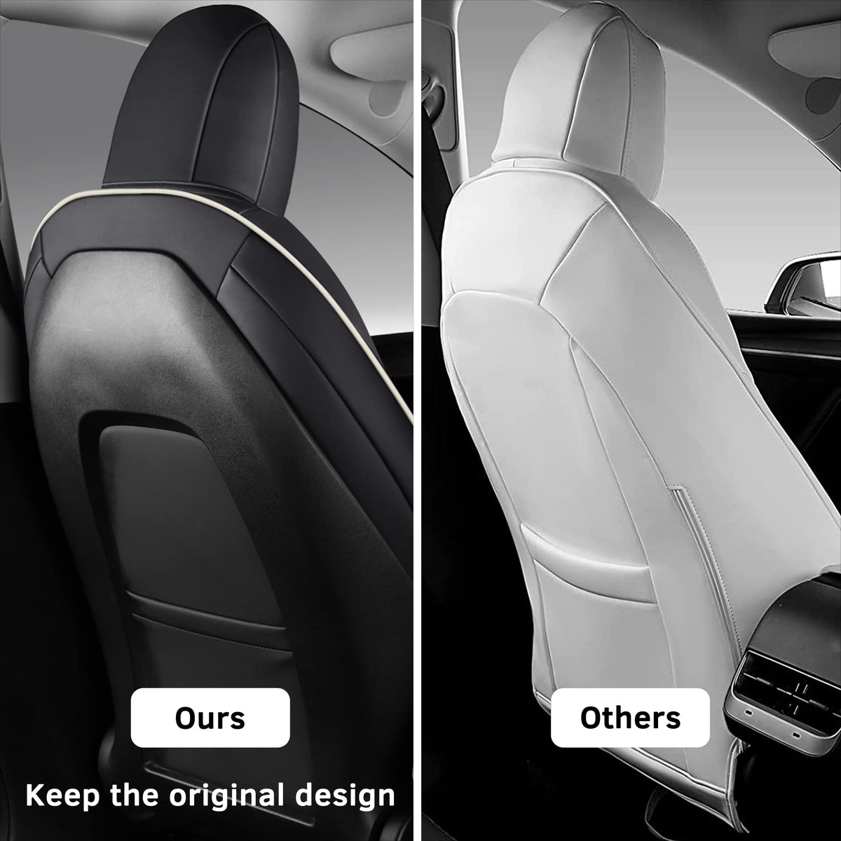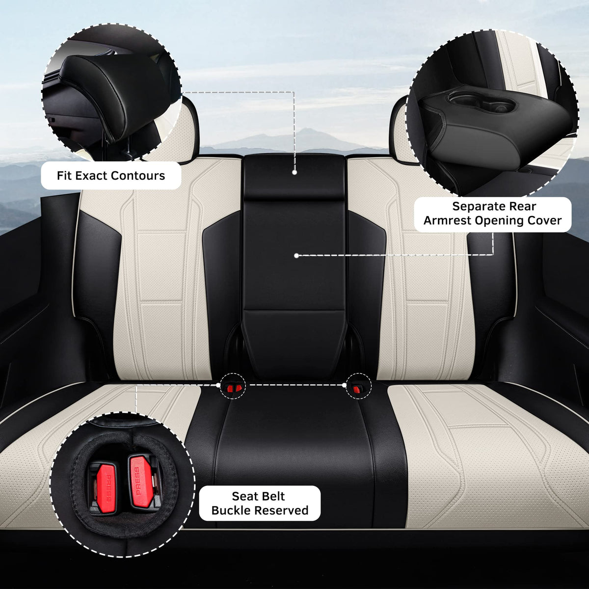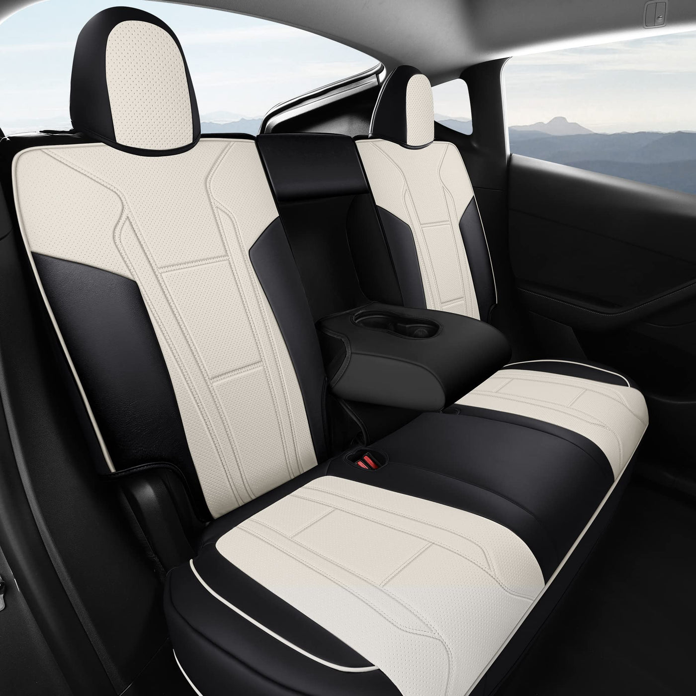 FREESOO Tesla Model Y Seat Covers 2023 2022 2021 2020 Leather Car Seat Cover Full Set Accessories Black White