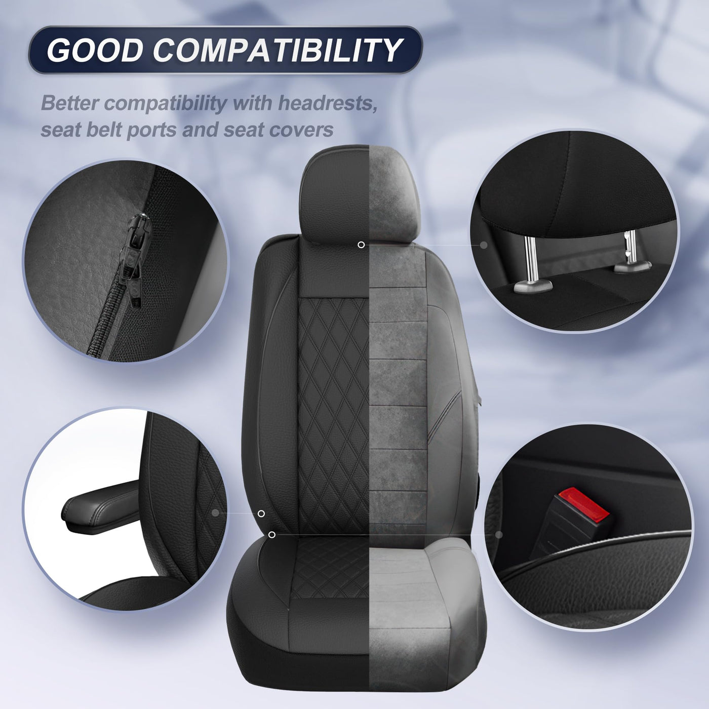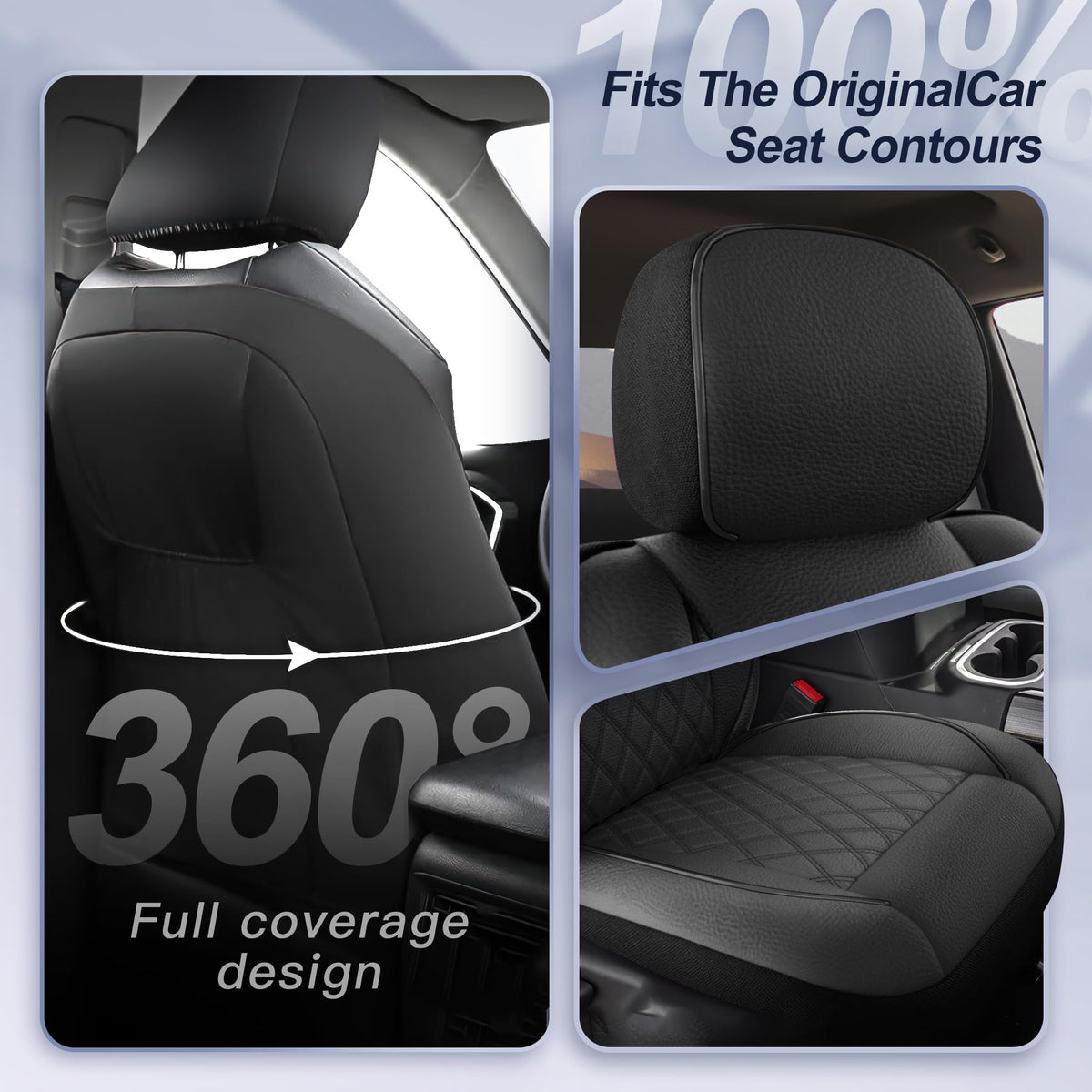 Elevate your Chevy Silverado's interior with our premium, custom-fit front seat covers. Crafted with durable, waterproof faux leather, these seat protectors feature a stylish piping diamond pattern and two-tone design. They're designed to fit Silverado 1500, 2500, and 3500 models, and are compatible with armrests and side airbags. The elastic, wraparound polyester back ensures a secure fit, while the leather bucket seat protector provides a luxurious feel. Keep your truck's seats looking new with these easy-to-clean, black seat covers.