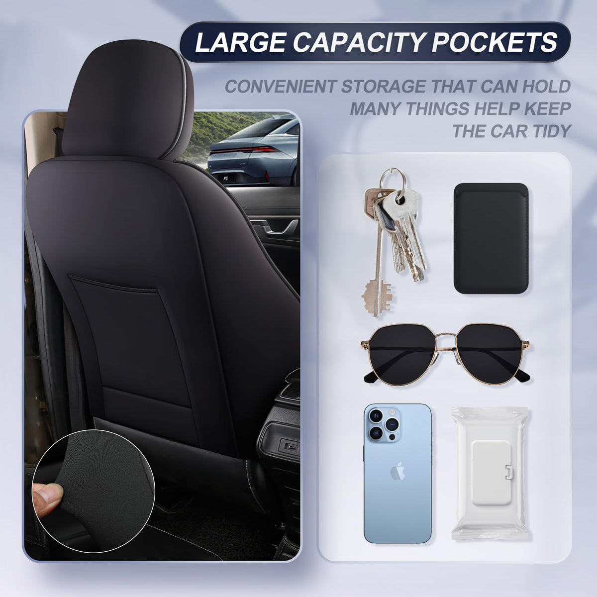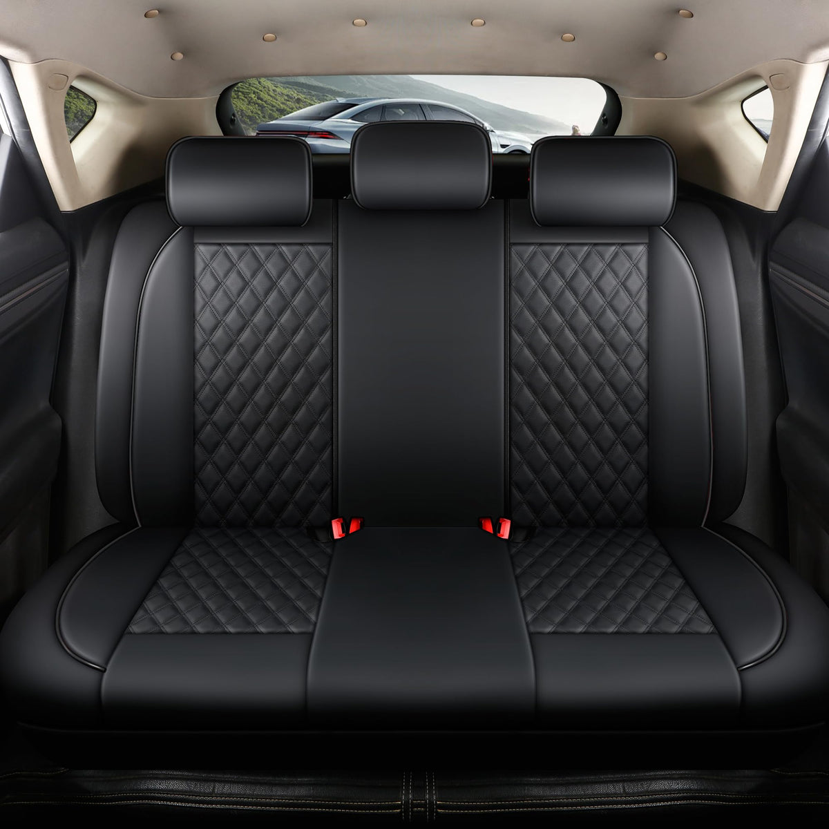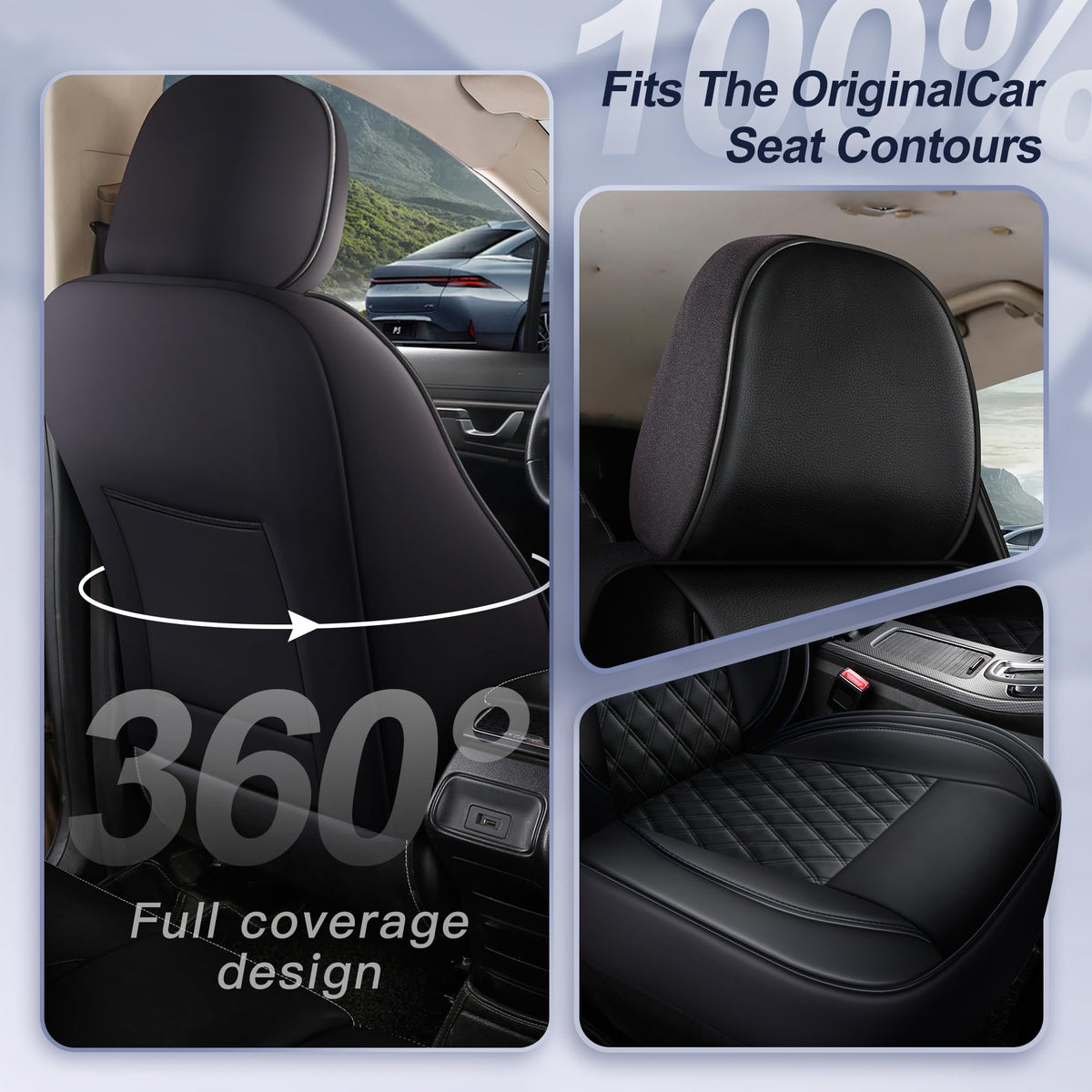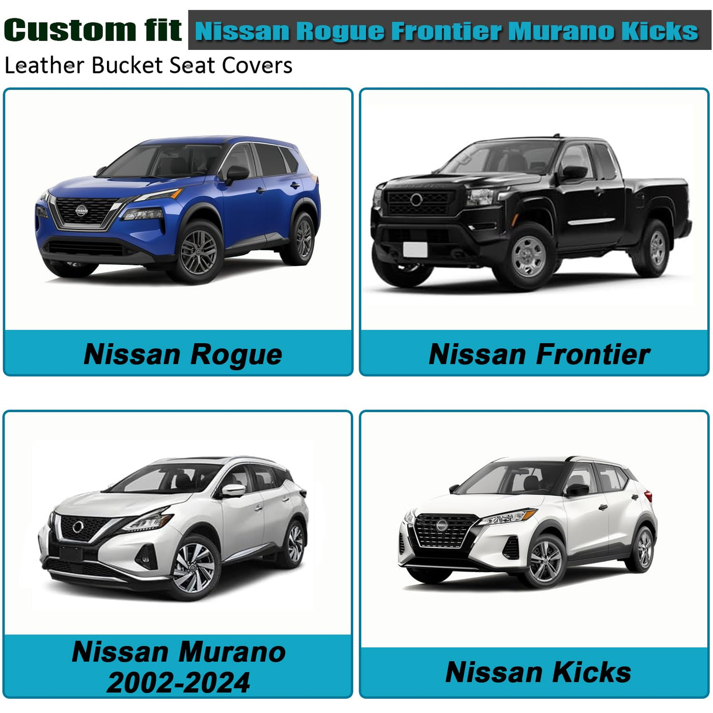 GIANT PANDA Full Set Piping Leather Seat Cover for Nissan, Rogue Kicks Frontier Murano, Custom Fit Seat Protectors (Black 5-Seat