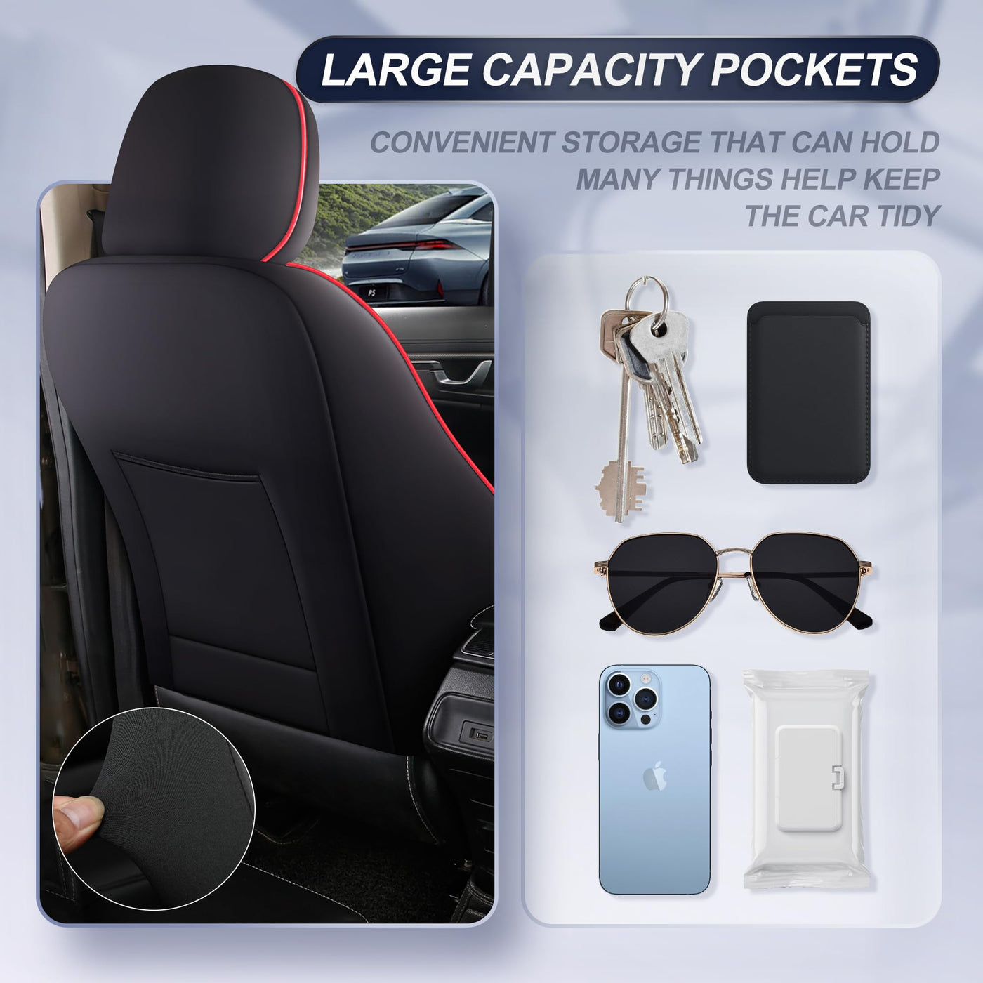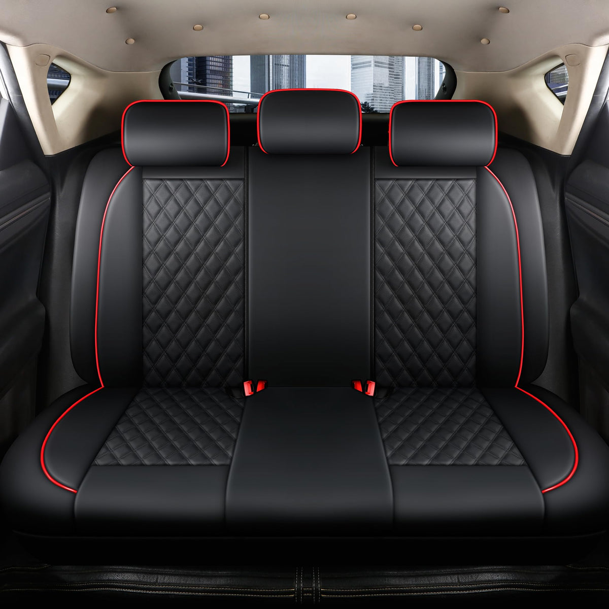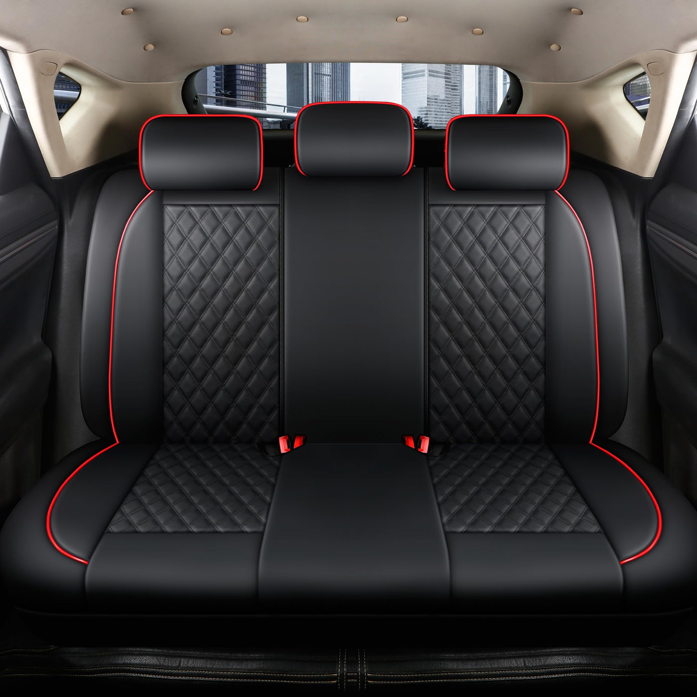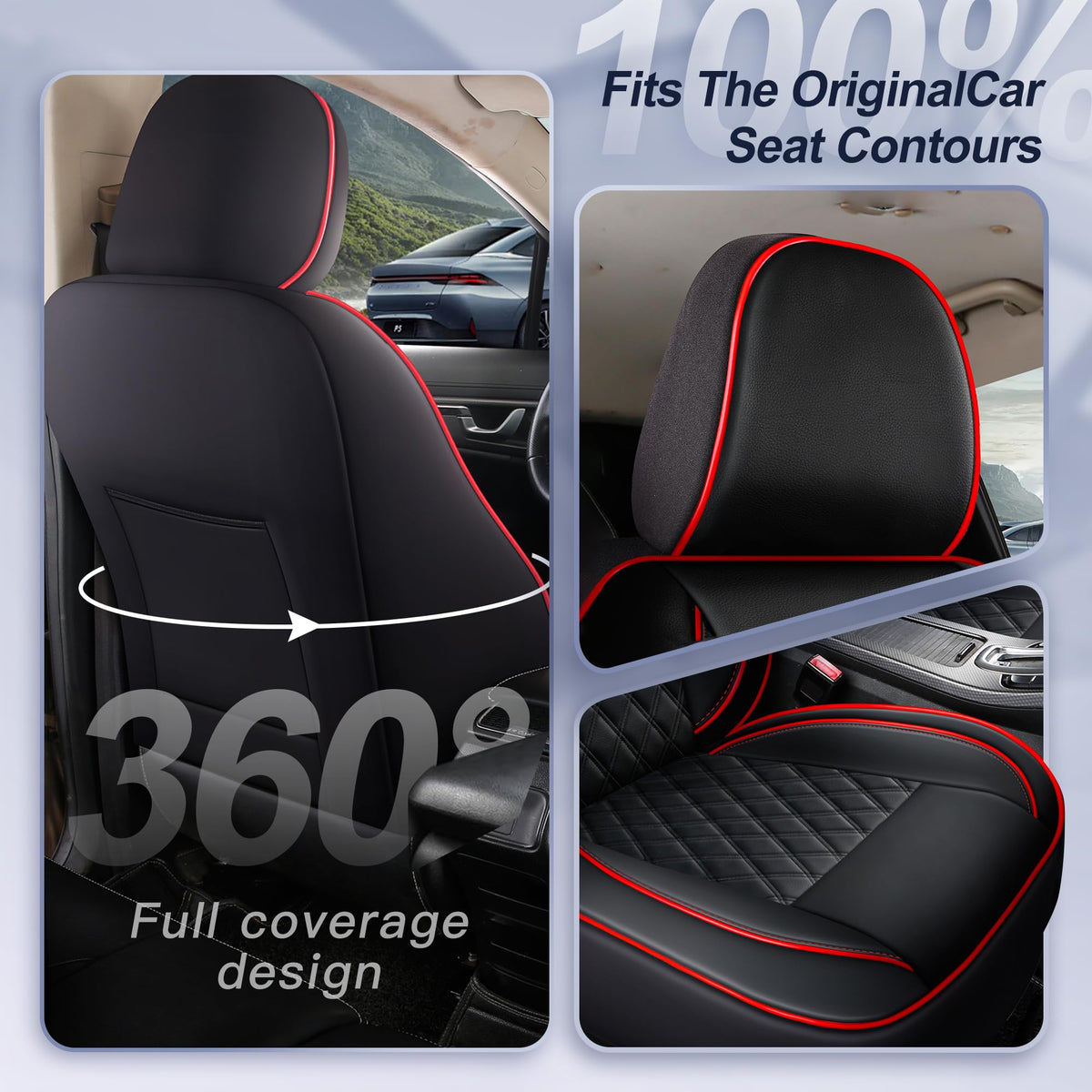 GIANT PANDA Full Set Piping Leather Seat Cover for Nissan, Rogue Kicks Frontier Murano, Custom Fit Seat Protectors (Red 5-Seat)