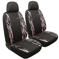 Giant Panda Pink Zebra Print Cloth Front Car Seat Covers, Bucket Seat Covers, Low Back Auto Seat Covers For Cars, Suv, Airbag Co