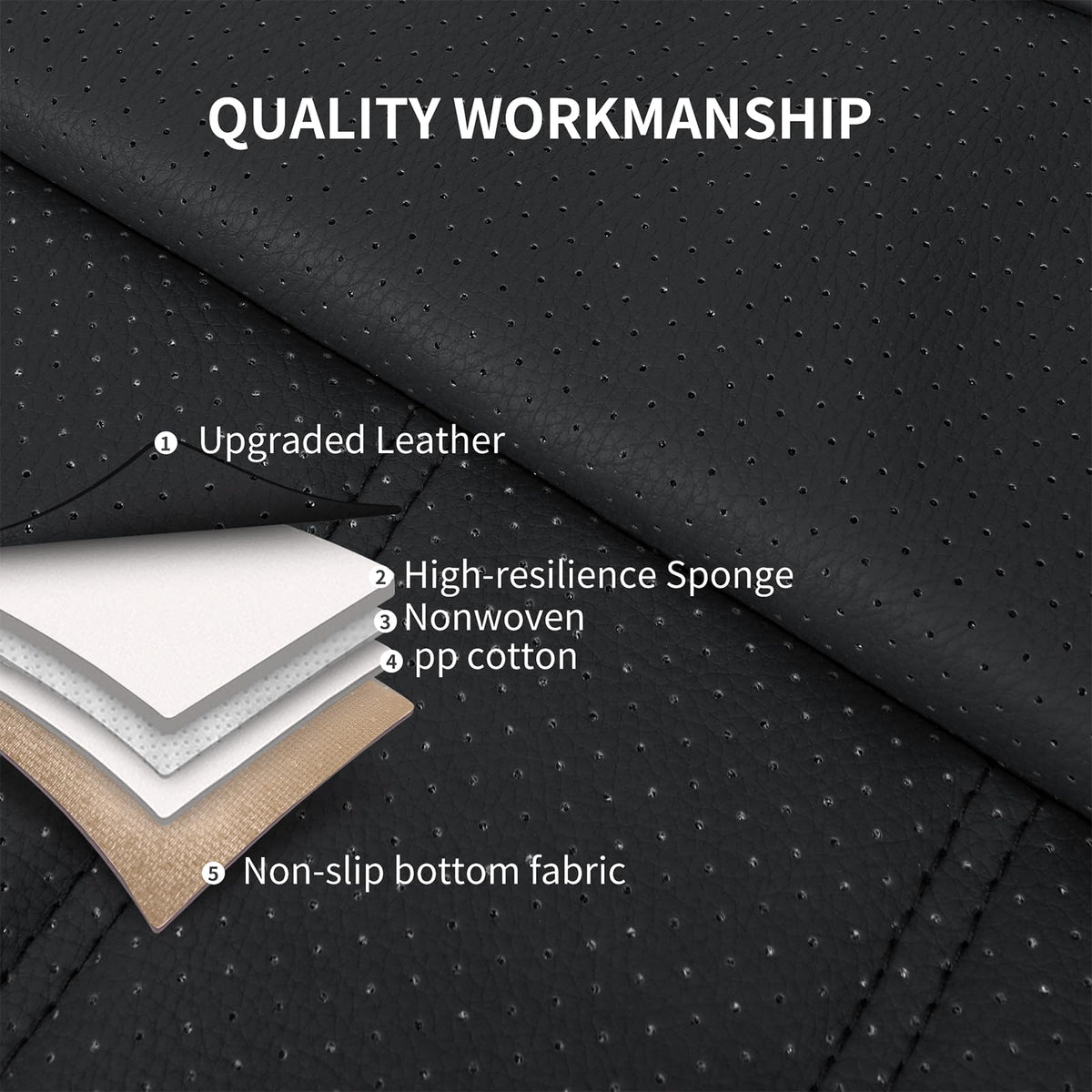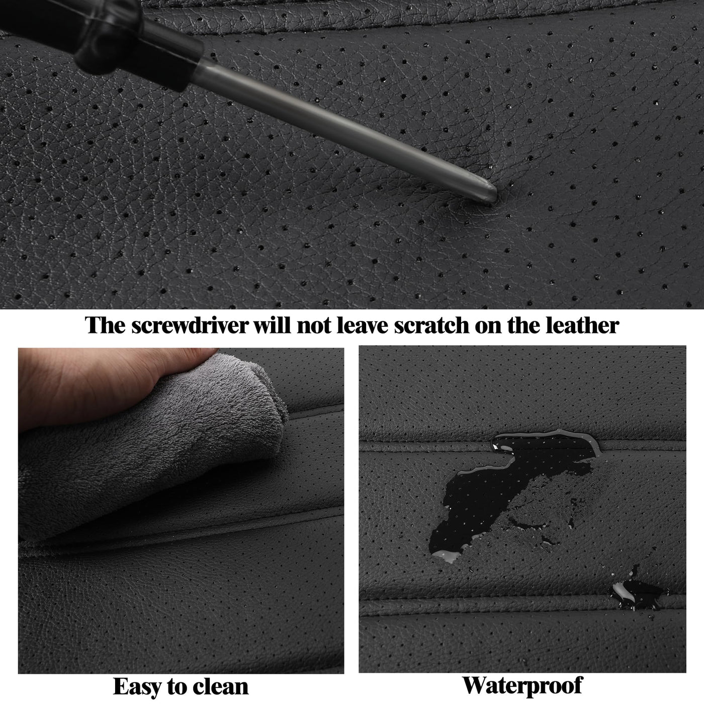 ?Breathable Design?Our car seat covers are designed by high-quality leather and 3D foam back support. The leather is stretchy and back feature a perforated design that improves breathability, enhances comfort while giving the covers a luxurious texture that enhances the overall look of the car interior. ?Universal Fit?Our universal car seat covers are designed to fit a wide range of vehicles, from sedans and trucks to SUV and commercial vehicles. Crafted from high-quality materials, these covers offer durability and style. ?Airbag Compatibility?Safety is our priority with these seat covers. Car seat covers are engineered to be fully compatible with airbags, ensuring maximum protection for you and your passengers. They also allow unhindered use of seat belt buckles. ?Easy Installation?HChengkikz automotive seat covers are easy to install. Whether you're a seasoned car enthusiast or a first-time DIYer, our step-by-step installation guide make it easy to install with confidence.If you have any questions or concerns, our dedicated customer service team is always available to assist you. ?Full Coverage?These car seat covers fully protect the front of your vehicles seats from every single angle so you dont need to worry about your kids kicking and damaging the back of your seat.Split rear seat cover, The highlighted feature is the zipper unlocking mechanism for the center armrest, allowing convenient access and maintaining a seamless look. ?Reliable Service?Purchase with confidence knowing you're backed by our 30-day money-back guarantee. We stand by our commitment to quality. Should you encounter any issues such as packaging problems, missing hardware, or quality concerns, our dedicated customer service team is ready to assist you promptly.