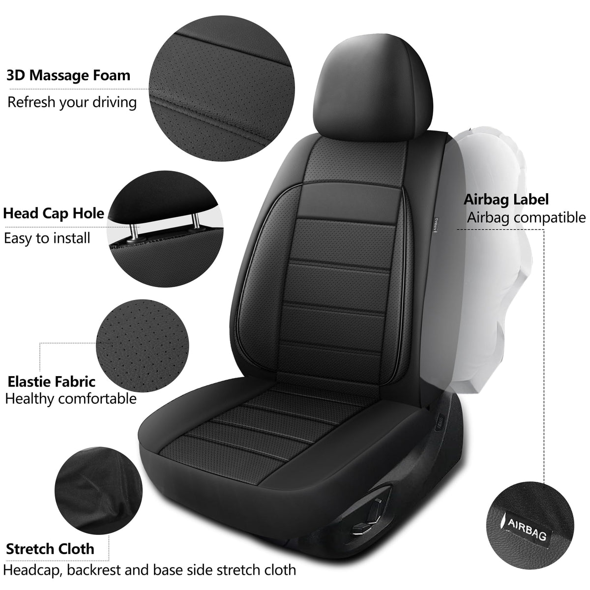 HChengkikz Leather Seat Covers, Breathable and Comfortable 3D Foam Back Support Car Seat Covers, Airbag Compatible,Automotive Se