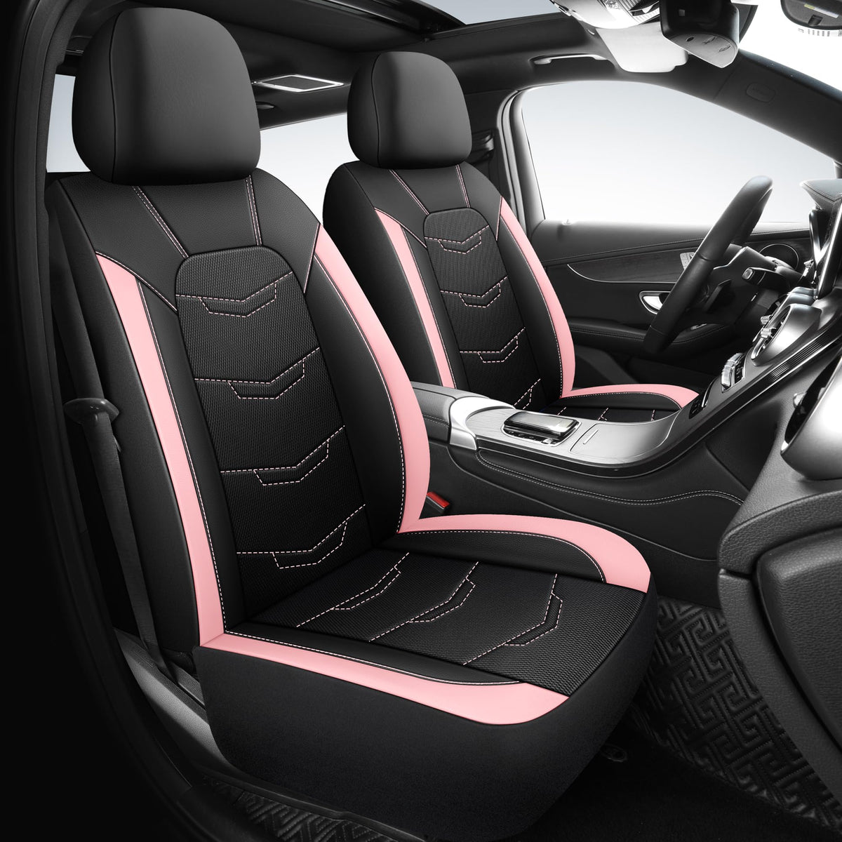 HChengkikz Pink Seat Covers,Sport and Breathable Seat Covers, Anti-Slip Universal Fit Automotive for Cars Sedan SUV and Truck(2