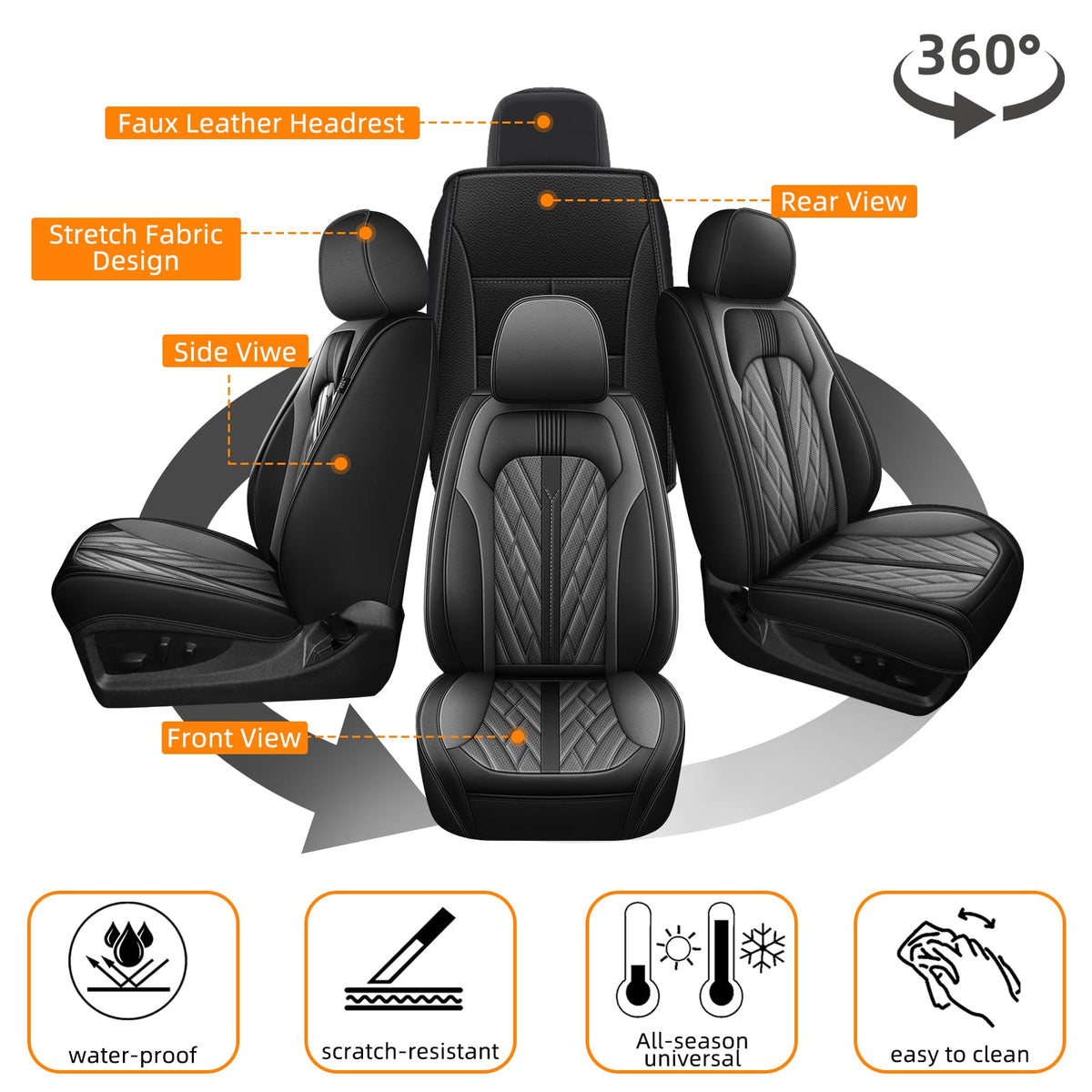 Our Store is a professional auto parts supplier integrating design, research and development, production and sales, providing affordable high-quality seat covers to protect your seats. Our products will meet your needs.We regard customers as God and provide the quality service try our best. 1.?RAM 1500 2500 3500 Semi-Custom?The seat covers are customized for Dodge RAM 1500 2002 2003 2004 2005 2006 2007 2008 2009 2010 2011 2012 2013 2014 2015 2016 2017 2018 & RAM 1500 2500 3500 2011 2012 2013 2014 2015 2016 2017 2018 2019 2020 2021 2022 2023 2024 Crew Cab, Double Cab, Quad Cab, Mega Cab. Note: Customized fit for curved rear seats only. 2.?40/60 Split Rear Seat Cover?Fit 40/60 split rear seats, does not affect any function of the original car seat; please see the picture for details. 3.?New Upgrade for Front Seat Cover?360 full-coverage front seat covers to better protect your car seats. 4-way zippers make the seat covers fit the original car seats better. In addition, on the back of the front seat cover, we designed 3 storage bags to make your items easier to store, cleaner and tidier. 4.?Compatible with Airbags?The side of the front seat cover adopts a single-line sewing process and is compatible with airbags to ensure that the airbag can be properly deployed in an emergency. 5.?Waterproof and Easy to Clean?The full set seat cover is made of high-quality artificial leather, filled with sponge and PP cotton, with appropriate thickness to protect the original car seat from wear, stains, and animal hair. You can use a wet towel to wipe the car seat cover,it is very convenient. 6.?Easy to Install?Please read the instructions before installing these seat covers. The installation method of the seat cover is very simple, even if you are installing it for the first time, it can be installed in 15-30 minutes. 7.?The package contains? 2PCS * front seat covers + 2PCS front headrests 1 * installation instruction manual