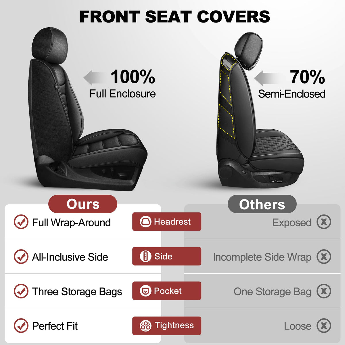 IKABEVEM Seat Covers Fit for Toyota Tundra : 2014-2021 Crewmax Double Cab Faux Leather Truck Pickup Front Seat Covers (2PCS Fron