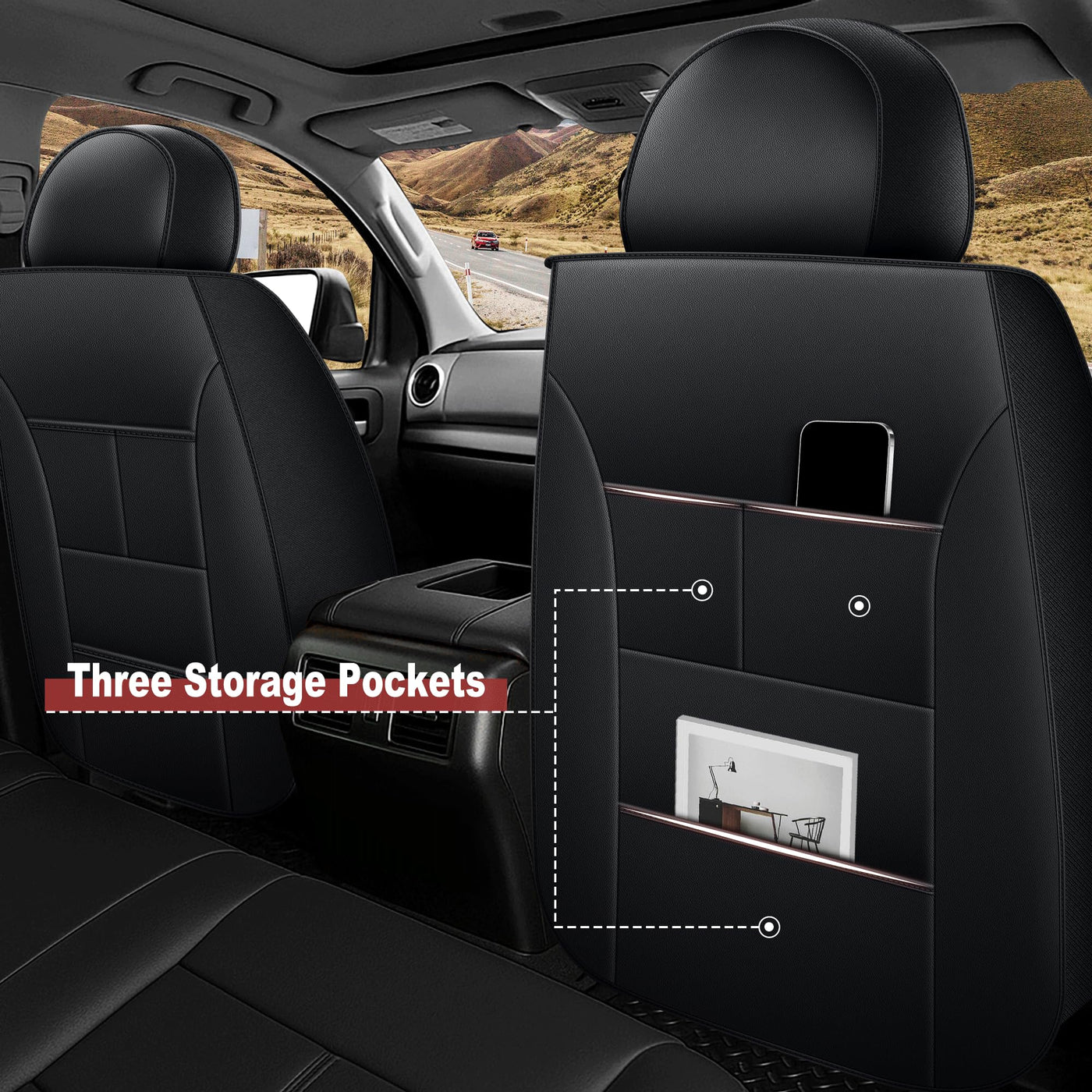 IKABEVEM is a professional auto parts supplier integrating design, research and development, production and sales, providing affordable high-quality seat covers to protect your seats. IKABEVEM's products will meet your needs.We regard customers as God and provide the quality service try our best. 1.?CUSTOM FIT FOR TOYOTA TUNDRA?seat covers full set 5 seats are customized designed to fit for 2014 2015 2016 2017 2018 2019 2020 2021 Tundra TRD Sport TRD Pro Limited Platinum SX Package Trail Edition Tundrasine Concept 1794 Edition Crew Double Extended Cab Regular Cab, which a perfect fit and maximum comfort. 2.?40/60 Split Rear Seat Cover?Fit 40/60 split rear seats, does not affect any function of the original car seat; please see the picture for details. 3.?New Upgrade for Front Seat Cover?360 full-coverage front seat covers to better protect your car seats. 4-way zippers make the seat covers fit the original car seats better. In addition, on the back of the front seat cover, we designed 3 storage bags to make your items easier to store, cleaner and tidier. 4.?Compatible with Airbags?The side of the front seat cover adopts a single-line sewing process and is compatible with airbags to ensure that the airbag can be properly deployed in an emergency. 5.?Waterproof and Easy to Clean?The full set seat cover is made of high-quality artificial leather, filled with sponge and PP cotton, with appropriate thickness to protect the original car seat from wear, stains, and animal hair. You can use a wet towel to wipe the car seat cover,it is very convenient. 6.?Easy to Install?Please read the instructions before installing these seat covers. The installation method of the seat cover is very simple, even if you are installing it for the first time, it can be installed in 15-30 minutes.