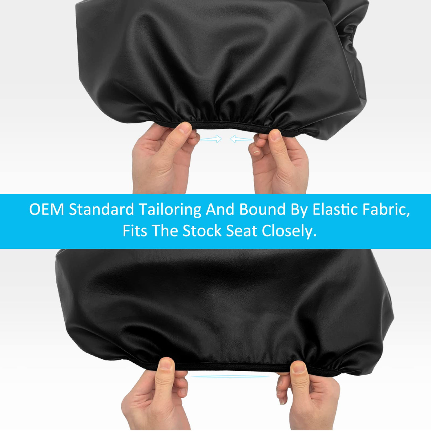 Q: What materials are used in the JAVIK Seat Cover?A: The JAVIK Seat Cover is made from high-grade stretch poly urethane leather, which provides durability and comfort. This material is thicker than standard options, ensuring a better fit that helps prevent water from seeping into the sponge.