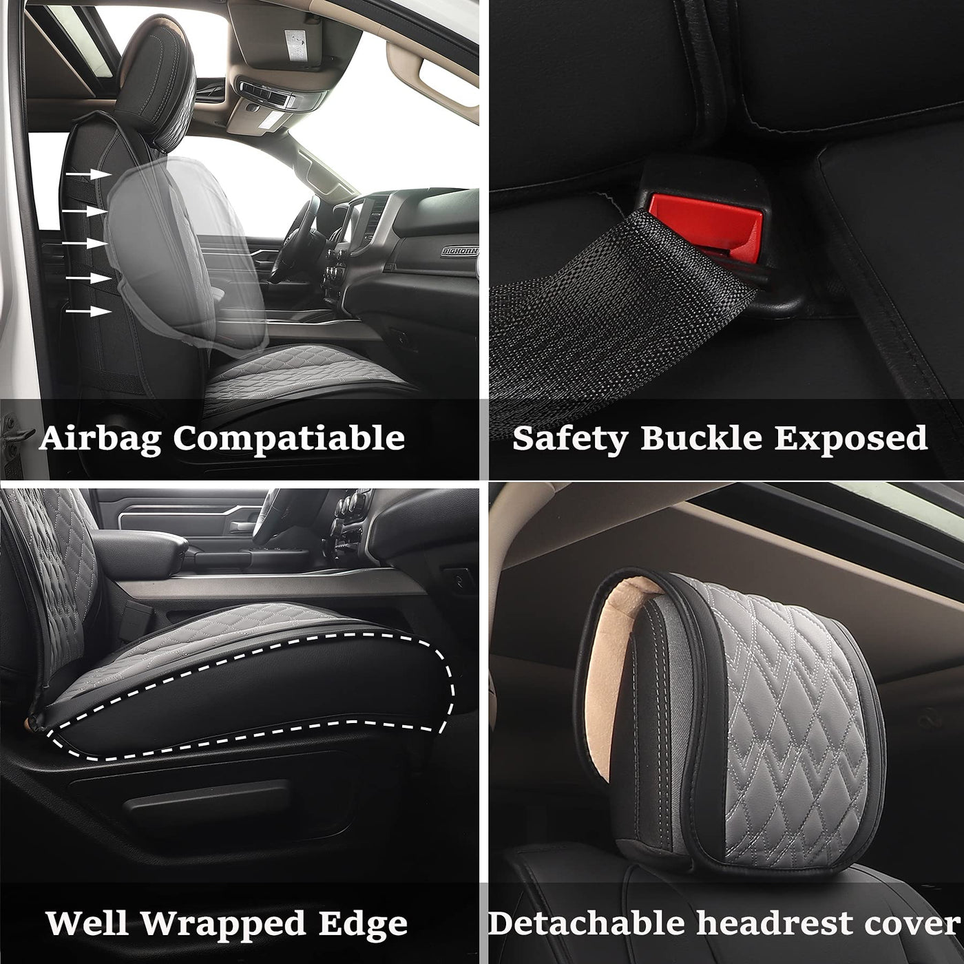 Q: Do these seat covers affect the use of seat belts and airbags?A: No, the design of the JOJOBAY Car Seat Covers ensures that they do not interfere with seat belt buckles or airbags, maintaining the safety features of your vehicle.