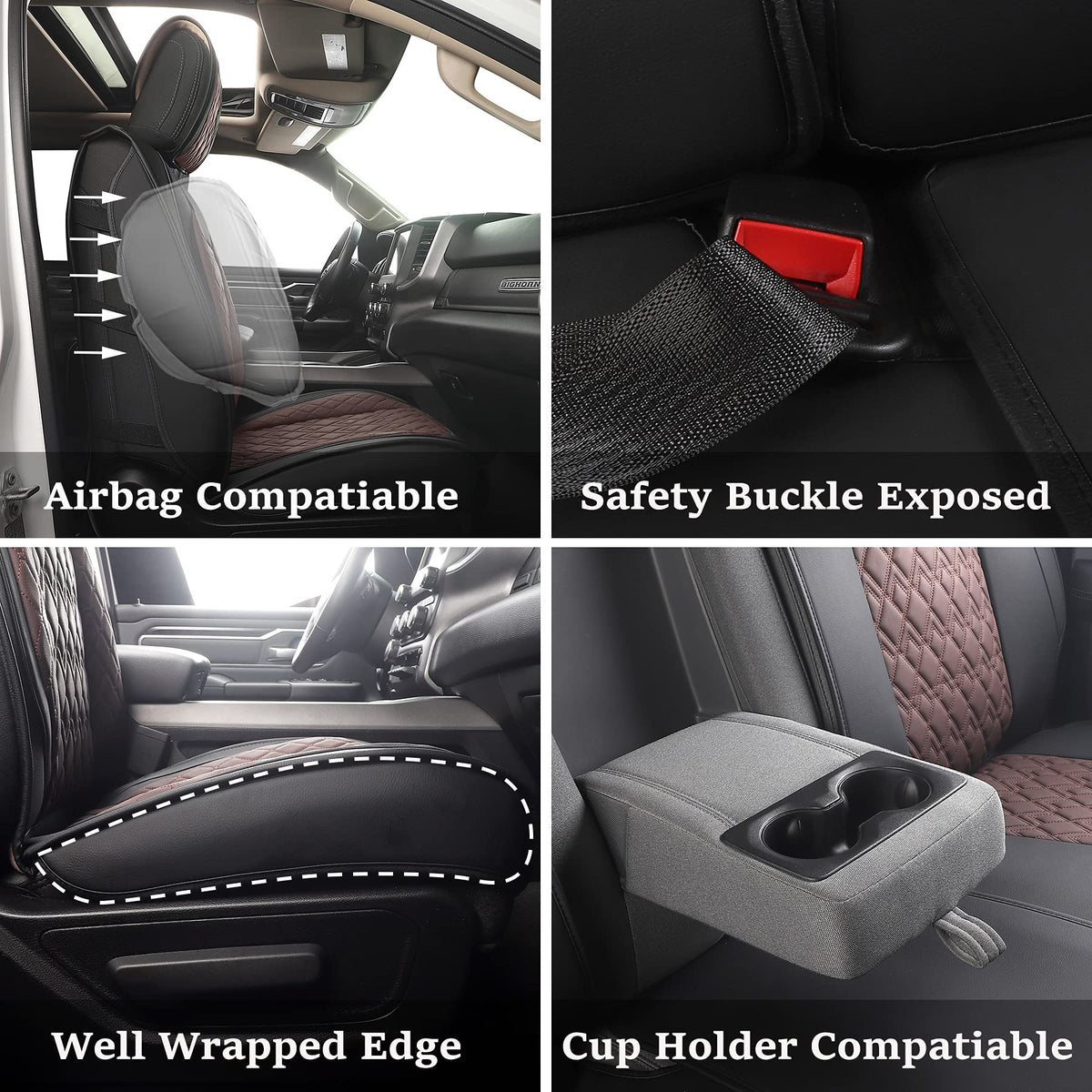 Jojobay Car Seat Covers For Dodge Ram Full Set,Fit Ram 2009-2023 1500/2500/3500 Pick-Up Truck,Crew,Regular,Quad,Mega Cab,Waterproof Leather Seat Covers Protectors(5Pcs Full Set,Black-Brown)