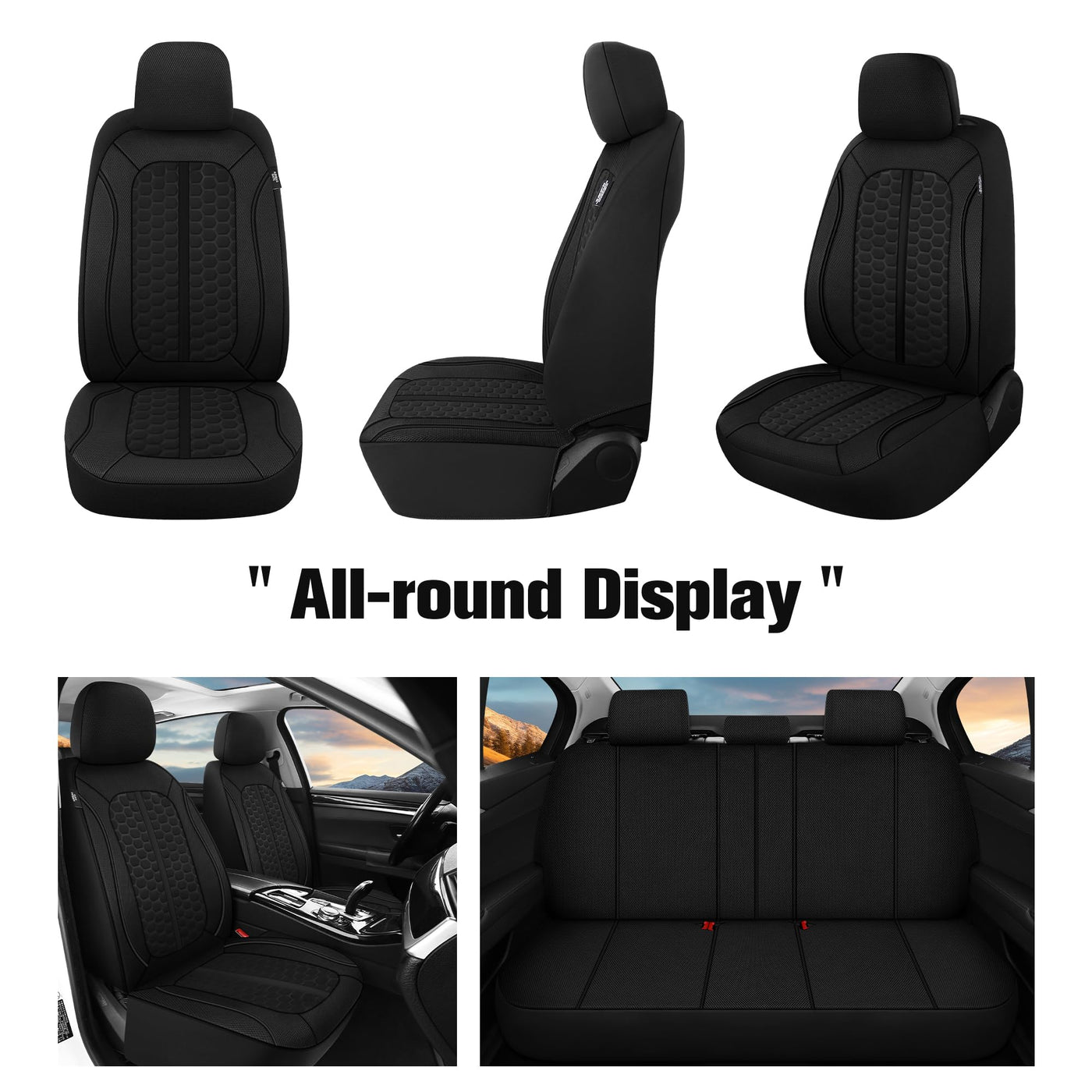 [Breathable and Comfortable]Crafted with premium-quality mesh fabric, this car seat cover features an advanced 3D large mesh pattern that ensures maximum ventilation and comfort during every ride. The breathable material prevents heat buildup, keeping you cool even on long journeys. Designed to enhance your driving experience, it offers a perfect combination of durability, functionality, and comfort. | [Universal Fit]Designed with versatility in mind, this car seat cover is compatible with a wide range of vehicles, including cars, trucks, sedans, SUVs, and pickups. Its universal fit ensures easy installation and a snug, secure fit across various seat types. | [Easy Installation]Effortlessly install this car seat cover in just 20 minutes, even if you