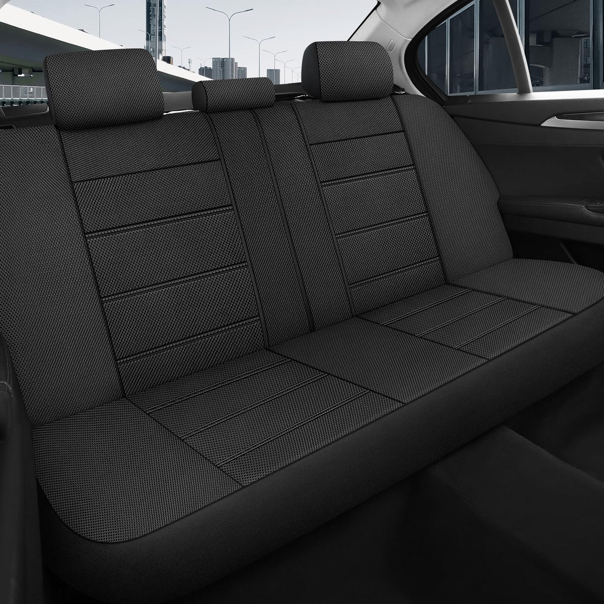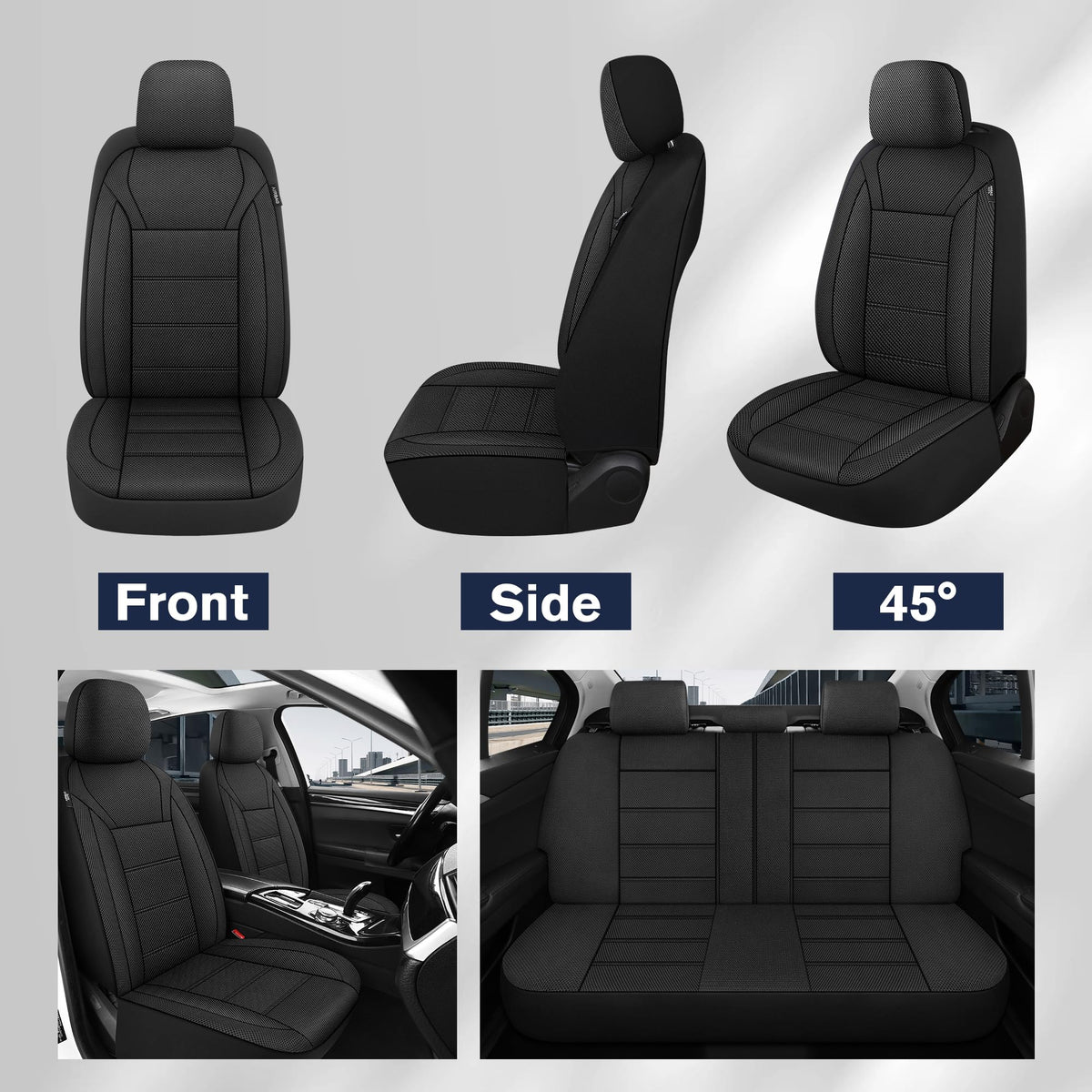 ?Breathable 3D Mesh Fabric?Enjoy optimal airflow and ventilation with our innovative design, keeping you cool and comfortable during those long drives and hot summer days. Crafted from high-quality mesh material, our seat covers provide excellent breathability, allowing air to circulate freely and preventing discomfort from sweat and moisture buildup. | ?Universal Fit? Universal fit car seat covers, designed to fit a variety of vehicles including sedans, trucks, SUVs, and even commercial vehicles. Made from high quality materials, If you're unsure whether our seat covers are compatible with your vehicle, our team is here to assist you in confirming the fit. | ?Airbag Compatible?Designed with safety as our top priority, our universal car seat covers are compatible with airbags and won