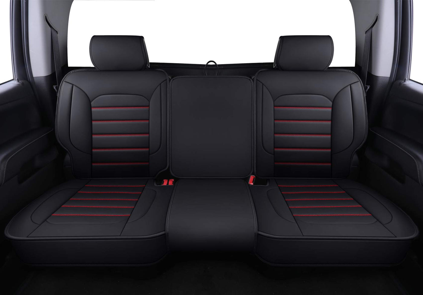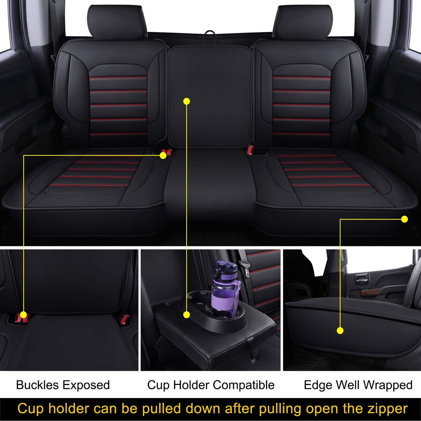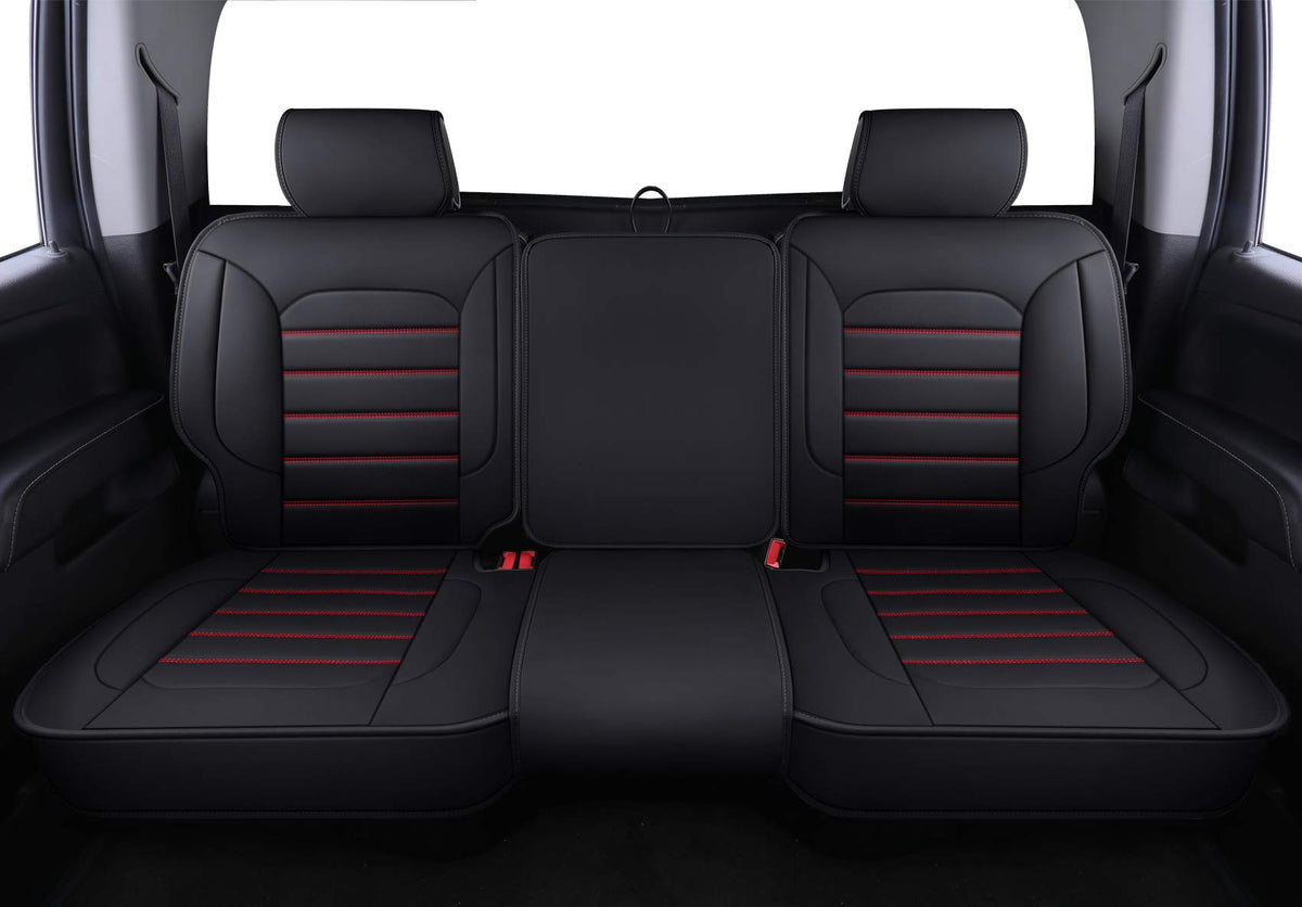 Luckyman Club Bench Silverado Seat Covers Fit For 2007-2023 Sierra Chevy Silverado 1500/2500 Hd / 3500 Hd Crew,Double,Extended Cab With Water Proof Faux Leather (Black & Red Rear Covers)